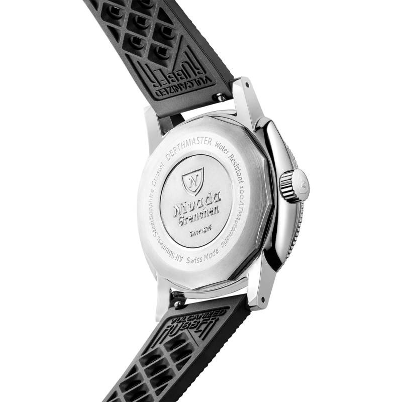 Son bracelet en caoutchouc noir allie parfaitement style contemporain et confort, idéal pour un usage quotidien ou des activités plus sportives. La matière en caoutchouc est reconnue pour sa flexibilité et sa résistance, idéale pour des environnements mouillés ou humides, comme c'est souvent le cas lors de sessions de plongée ou de natation. La boucle ardillon assure une fixation pratique et sécurisée, renforçant le confort sur le poignet et facilitant son ajustement. Avec un entrecorne de 20 mm, le bracelet s'accorde parfaitement au boîtier de la montre, complétant ainsi l'esthétique globale raffinée et fonctionnelle.