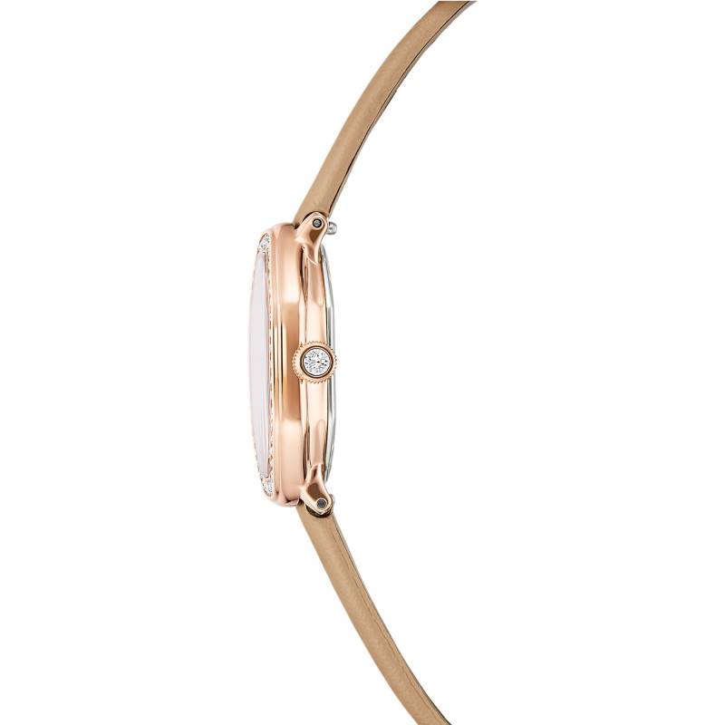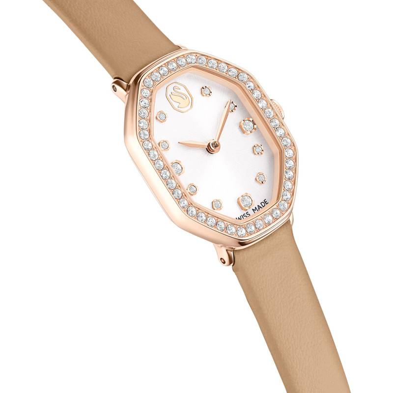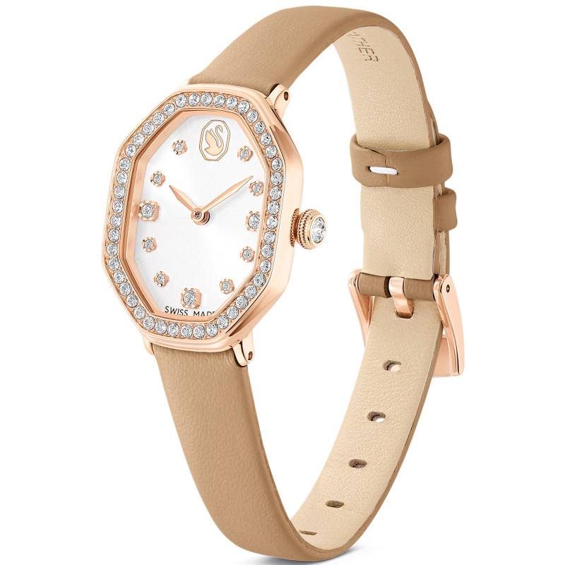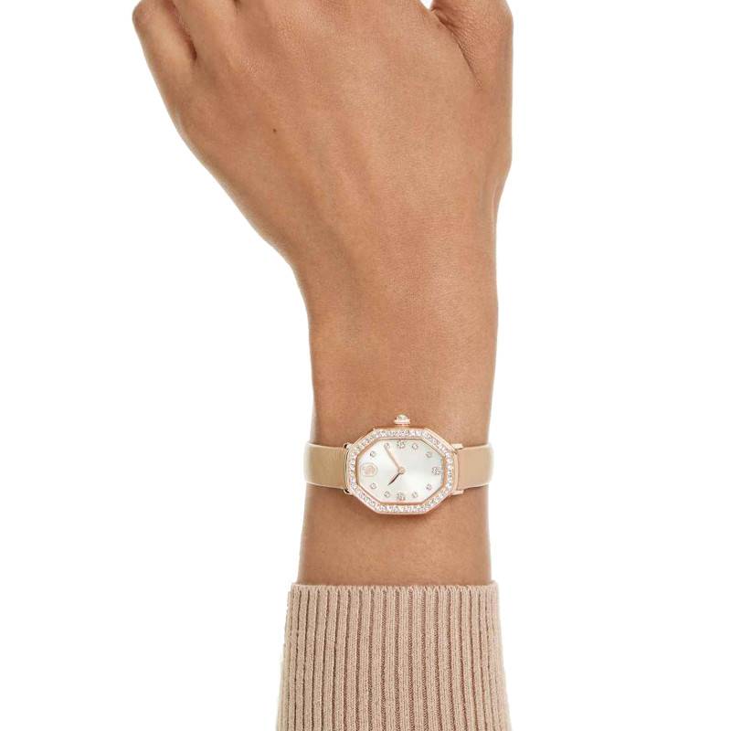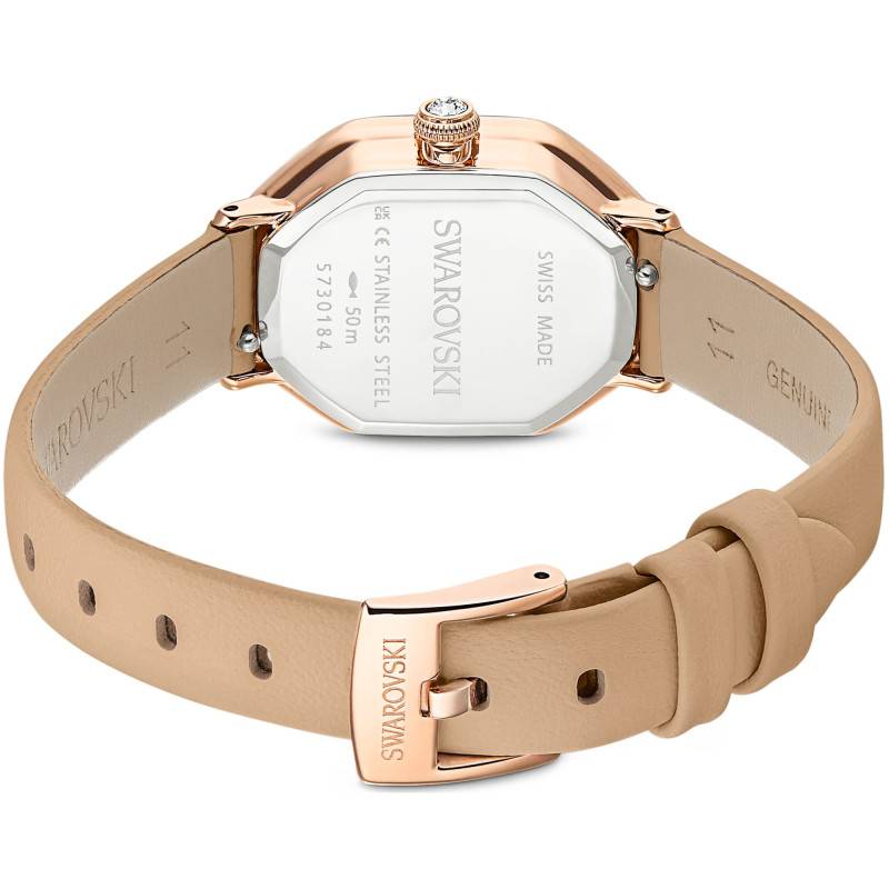 Cette montre Swarovski, baptisée Dextera Octagon, est un exemple frappant de l'art de l'horlogerie moderne. Elle se distingue par son boîtier de forme octogonale, révélant une matière en acier inoxydable sublimée par une finition PVD rose. L'architecture du boîtier affiche une dimension élégante de 32 mm de longueur et 23 mm de largeur, pour une épaisseur discrète de 7 mm. Le fond du boîtier est de type emboîté, garantissant une solidité à toute épreuve.
