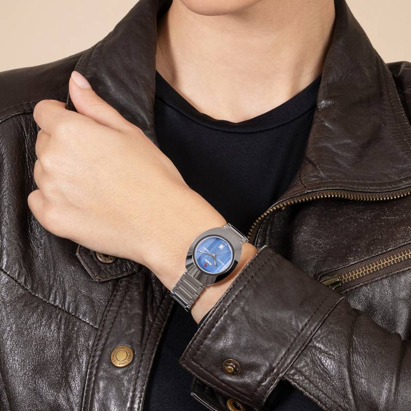 Le design est accentué par un unique bouton remontoir situé à la droite du boîtier, facilitant le réglage du temps. Fabriqué en Suisse, ce garde-temps reflète l'excellence horlogère, complétée par une garantie internationale de 5 ans, symbole de la confiance que Rado place dans ses créations. Le verre saphir qui protège le cadran est rehaussé par un traitement antireflets, permettant une lecture aisée des informations, même sous forte luminosité. L'étanchéité à 10 ATM garantit que la montre soit prête à affronter les activités quotidiennes sans souci.