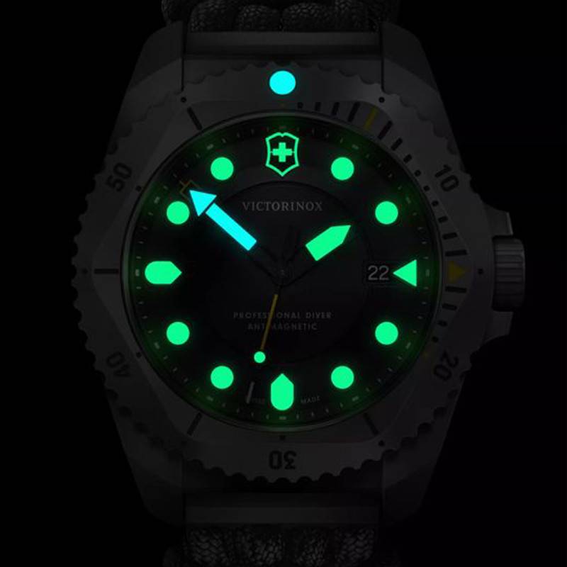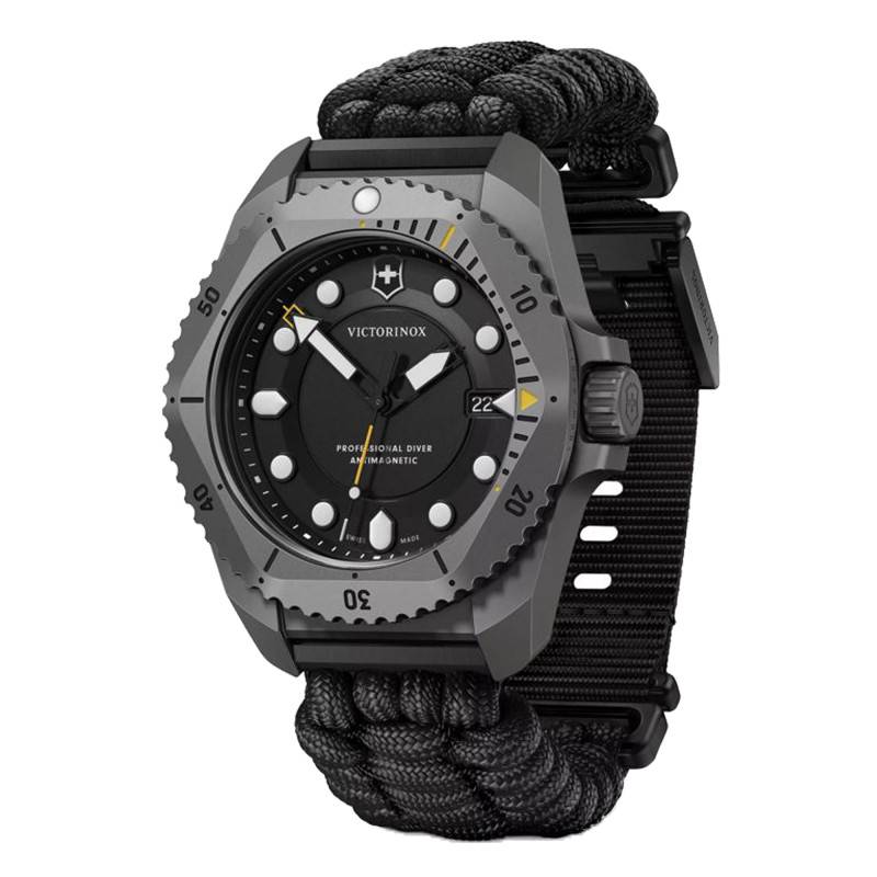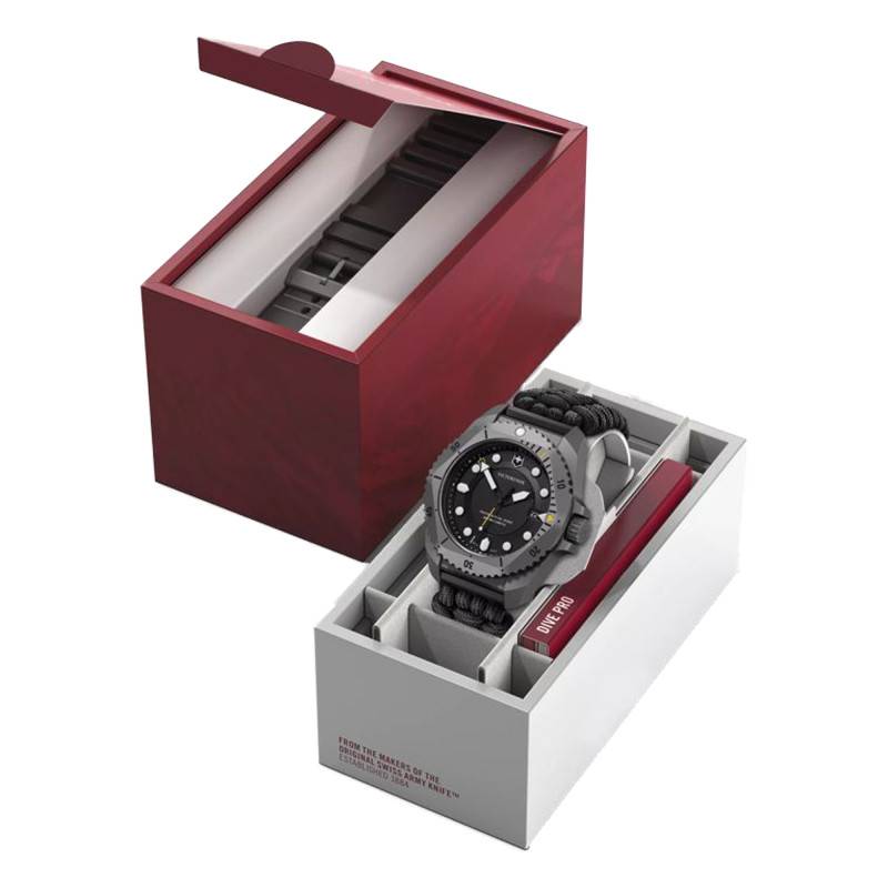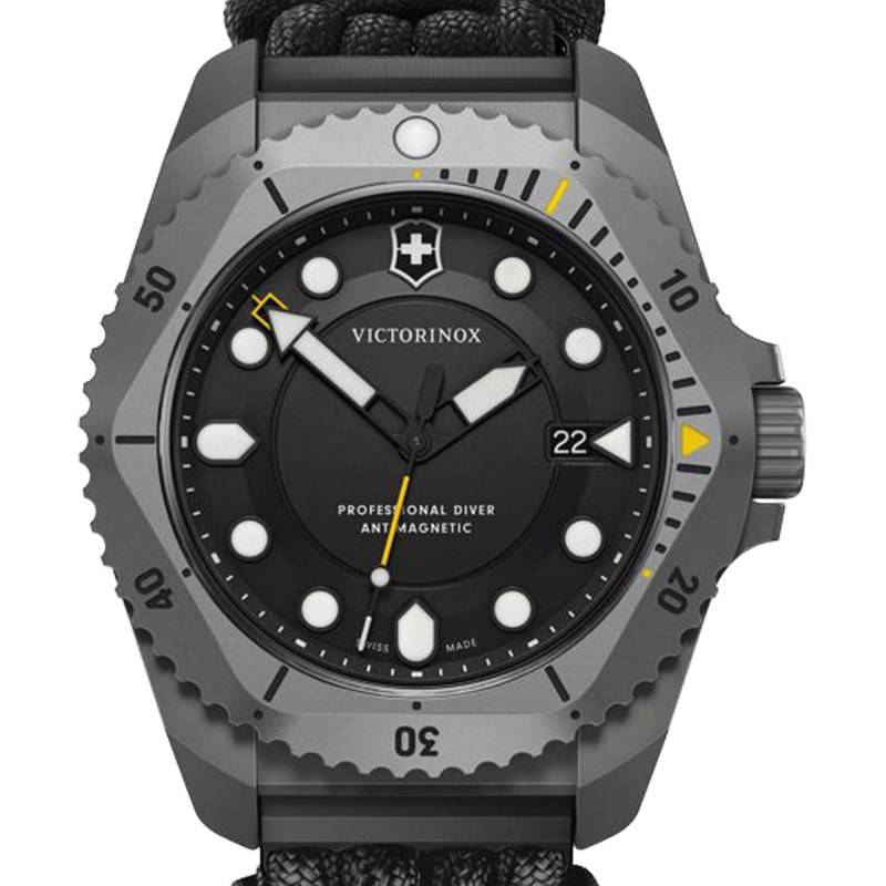Fondée en 1884, Victorinox est une entreprise suisse qui confectionne des couteaux suisses. Avec un engagement sans faille, elle se lance dans le monde de l'horlogerie en proposant des garde-temps visant la qualité et l'innovation avec une attention particulière à la précision. Elle propose la Dive Pro Quartz 241993.1, une montre de plongée avec une fonctionnalité et une résistance remarquables. Celle-ci est livrée avec un boîtier robuste conçu en titane de couleur grise et souligné par des finitions brossées et mates. Il présente une forme ronde angulaire, d'allure sportive, et accueille une lunette crantée et tournante avec des surfaces biseautées, graduées et chiffrées. L'ensemble forme un diamètre de 43 mm et une épaisseur de 13,50 mm qui s'adaptent parfaitement aux poignets masculins. Ce dernier se pare d'un verre saphir qui protège agréablement le cadran contre les rayures et les dommages. Sur le côté droit, se trouve la couronne crantée et protégée qui permet le réglage des aiguilles et de la date avec une simple manipulation. L'ensemble est complété par un fond de boîte vissé qui promet une étanchéité de 30 ATM.