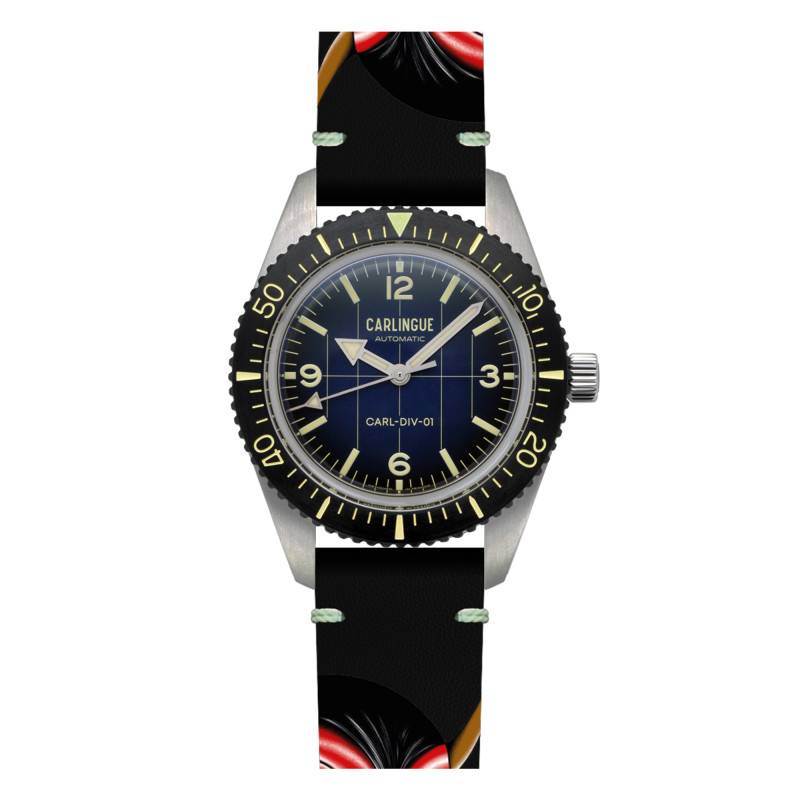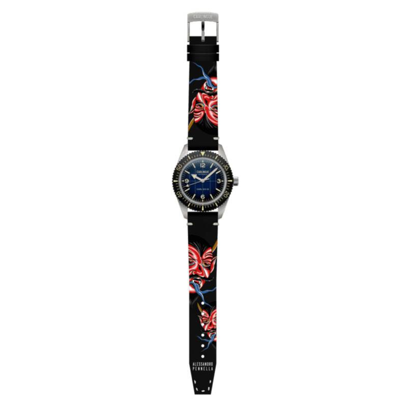 La montre Diver 01 Il Diavolo Tattoo de la marque Carlingue en collaboration avec l'artiste tatoueur Alessandro Pennella est une incarnation parfaite du style et de la fonctionnalité dans le domaine des montres pour hommes. Son boîtier rond est réalisé en acier 316L, une matière réputée pour sa robustesse et sa résistance à la corrosion, idéale pour une montre conçue pour des utilisateurs actifs. Avec un diamètre de 40,50 mm et une épaisseur de 11,85 mm, ce garde-temps se distingue par sa présence élégante et sa capacité à s'adapter à différents poignets tout en étant confortable à porter.