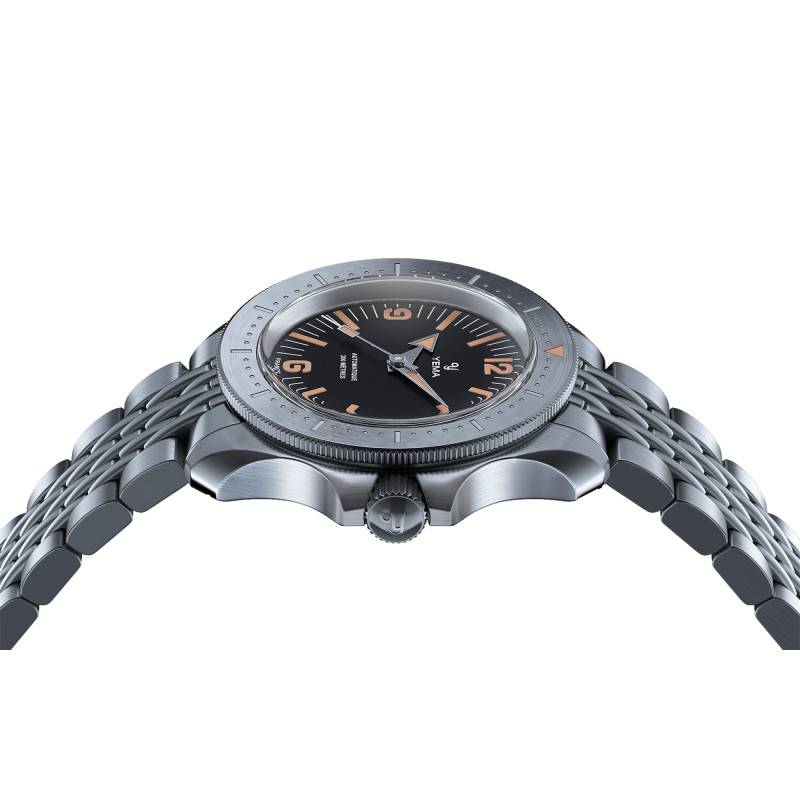 La marque Yema a rapidement gagné en notoriété grâce à ses créations innovantes conçues pour les amateurs de sports automobiles, pour les plongeurs et pour les citadins. Ses montres sont connues pour leur aspect à la fois élégant et fonctionnel en plus d'allier esthétisme classique et caractéristiques techniques avancées. Ainsi, chacun de ses modèles est conçu pour résister aux conditions les plus extrêmes, qu'il s'agisse de plongée en haute mer ou de courses automobile. Inspirée des montres de plongée Yema vintage des années 50-60, cette montre YEMA Diver YDIV24-AMS présente un design classique modernisé qui saura séduire les hommes et les femmes. Elle se compose d'un boîtier de forme ronde, inspiré des boitiers "Monnin, fabriqué en acier inoxydable 316L. De couleur argentée, celui-ci bénéficie d'une finition brossée/polie pour plus de carrure. Son diamètre de 39,50 mm et son épaisseur de 11,70 mm conviendront à merveille à tous les poignets. Ce modèle est muni d'une lunette crantée tournante équipée d'une graduation de minutes. De teinte grise, cette dernière présente, vers 12 heures, un repère luminescent de forme triangulaire qui brille dans le noir. Par ailleurs, un verre hésalite double dôme de 2,20 mm d'épaisseur surplombe le boîtier et laisse voir la beauté du cadran. Vous pourrez régler les aiguilles selon votre convenance grâce à la couronne crantée et protégée à 3 heures. Enfin, le fond de boîte vissé de ce garde-temps procure une étanchéité de 20 ATM, soit 200 mètres de profondeur.