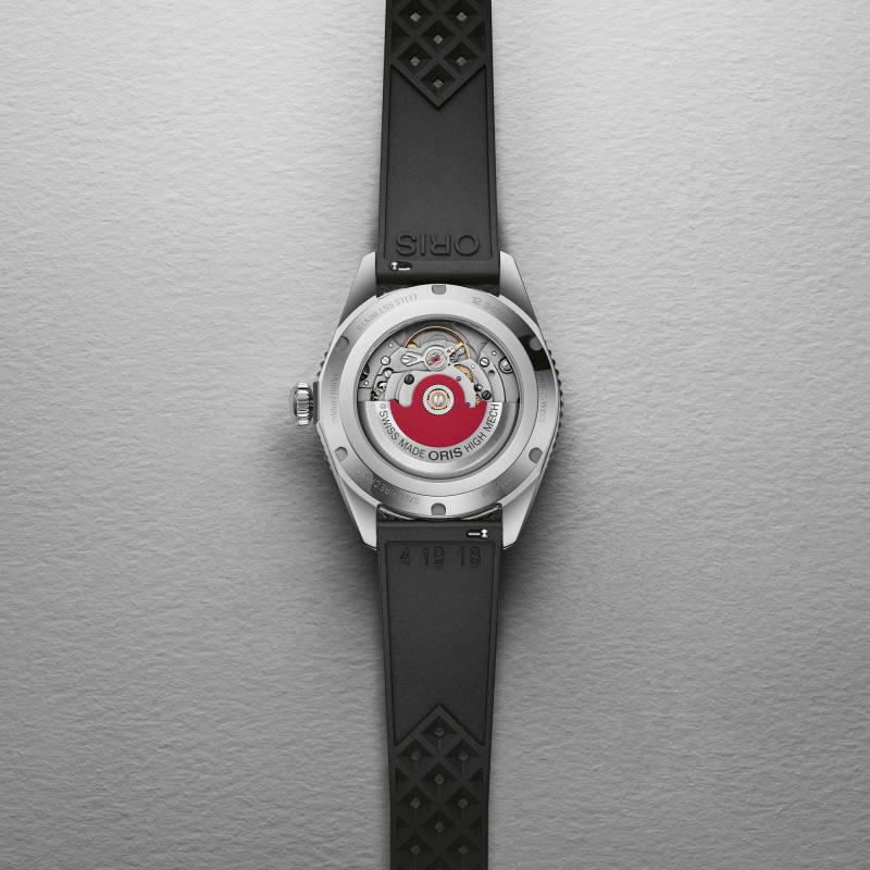 Pour cette belle montre de plongée, Oris a opté pour deux bracelets qui vous permettront de changer de style à tout moment.