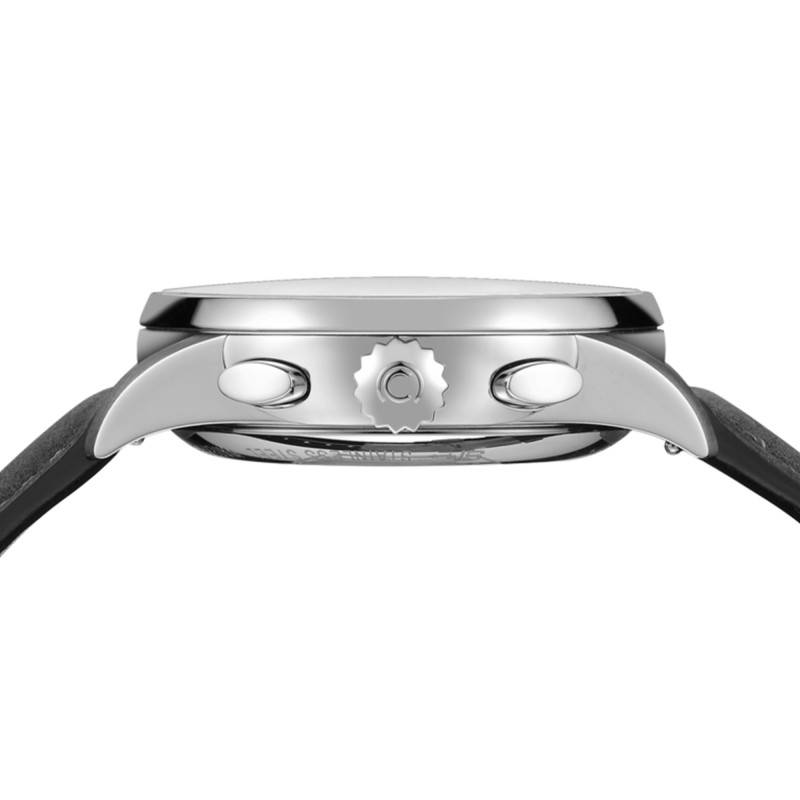 Le bracelet en cuir de veau de couleur gris, parfaitement accordé à l’élégance générale de la montre, vient ceinturer confortablement le poignet. La largeur du bracelet, avec son entrecorne de 21 mm, garantit une présence marquée et équilibrée. Le fermoir à boucle déployante assure une sécurité sans faille et une facilité d’utilisation, tout en ajoutant une garantie de maintien optimal.