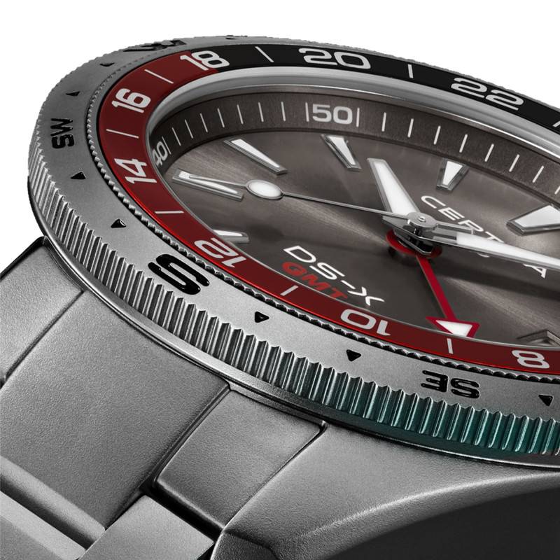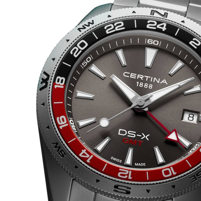 La Certina DS-X GMT innove par son impressionnante étanchéité de 20 ATM, permettant une utilisation en toute sérénité lors d'activités aquatiques telles que la natation et la plongée. Ce niveau d'étanchéité est rendu possible grâce à des caractéristiques de conception comme le fond de boîtier vissé, qui assure une protection maximale contre l'entrée de l'eau.
