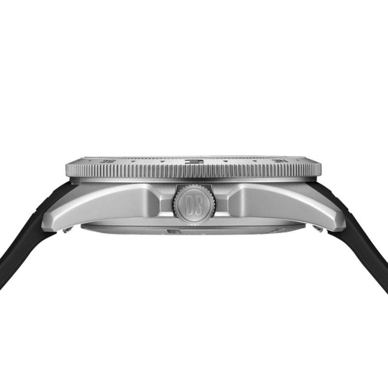 Le bracelet noir en caoutchouc synthétique confère à cette montre une allure dynamique et sportive, en parfaite harmonie avec l'esprit aventureux de la DS-X GMT. Mesurant 20 mm à l'entrecorne, il assure un port confortable et stable, complété par une boucle ardillon classique qui permet un ajustement rapide et sécurisé.