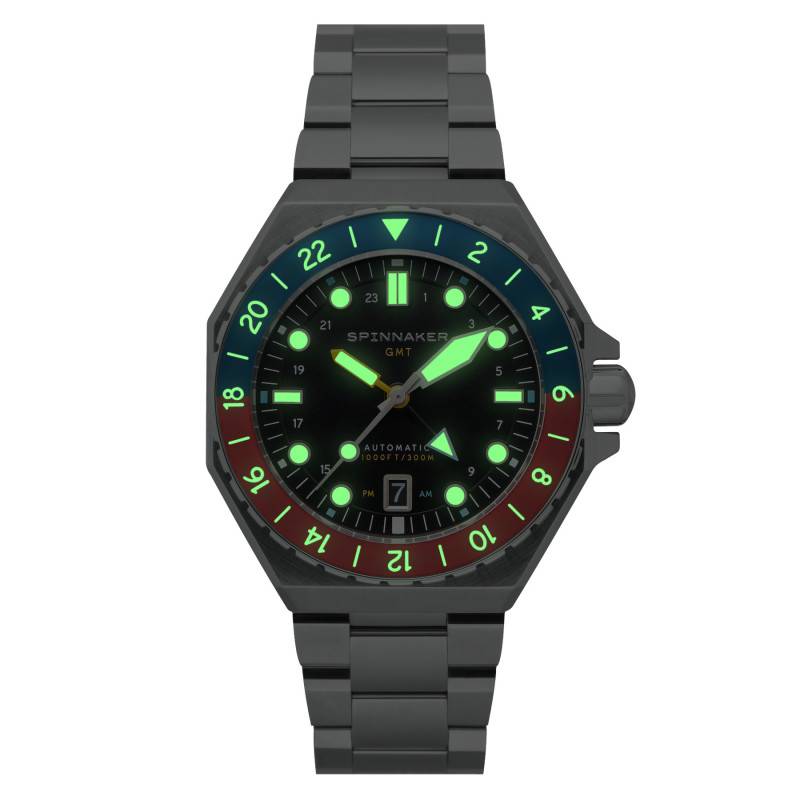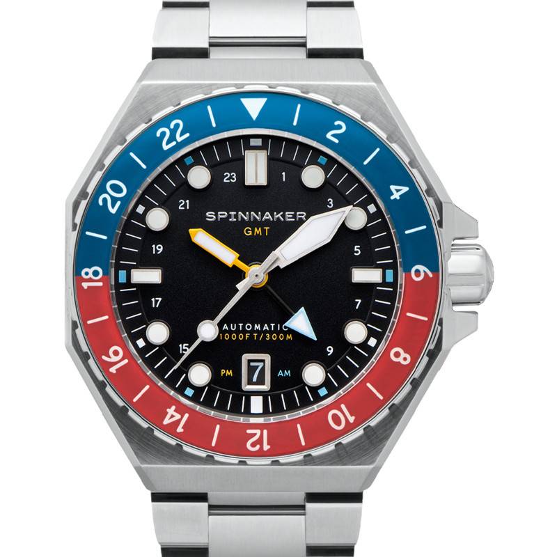 Spinnaker propose des montres qui tirent leur inspiration du monde maritime et des sports nautiques. Elle prend plaisir à confectionner des modèles pouvant se porter en milieu terrestre ou marin. Cette marque propose des plongeuses précises, fabriquées avec le plus grand des savoir-faire. À travers la collection Dumas GMT, nous avons choisi de vous proposer cette élégante montre Automatic SP-5119-44 qui vous accompagnera lors toutes vos aventures. Elle se compose d'un boîtier de forme octogonale en acier inoxydable. De couleur argentée, il dispose d'un diamètre de 44 mm, d'une épaisseur de 15 mm et d'une longueur de 48 mm. Parfaitement adapté aux hommes, il saura magnifier votre poignet. Sur ce dernier, est installée une lunette bidirectionnelle cannelée en verre trempé bleu et rouge qui se pare d'une graduation Superluminova de 0 à 24 marquant le second fuseau horaire. Ce boîtier est surplombé par un verre saphir bombé de traitement antireflet qui protégera efficacement le cadran tout en vous accordant une lisibilité optimale. Une couronne crantée est installée à 3 heures afin de vous donner l'accès au réglage des fonctions de cette horloge. Enfin, fond de boîte vissé doté d'une ouverture transparente lui assure une étanchéité de 30 ATM.