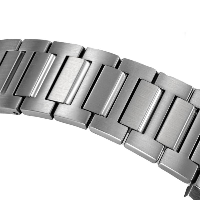 Le bracelet de cette montre est en acier inoxydable, choisi pour sa robustesse et son élégance intemporelle. Sa couleur grise, issue d'une finition brossée, se marie harmonieusement avec le boîtier pour un style homogène et contemporain. Ce bracelet est constitué de maillons en H, offrant un confort exceptionnel et une solidité à toute épreuve. Adapté à toutes les situations, qu'elles soient formelles ou décontractées, ce bracelet assure un maintien sûr grâce à sa boucle déployante, facilitant la mise en place et le retrait de la montre avec une grande simplicité.