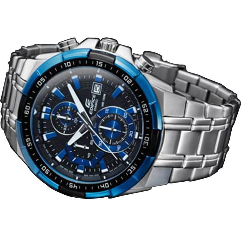 Le cadran de la montre Edifice, d'une beauté sans pareille, affiche un fond mat qui sublime son aspect sophistiqué. Y figurent des index luminescents et des chiffres arabes soigneusement posés pour garantir une lecture facile du temps, même dans des conditions de faible luminosité. Les trois aiguilles - heures, minutes et secondes -, ajoutent une dimension de mouvement à l'ensemble tandis que le chemin de fer des minutes encercle le bord du cadran pour une précision minutieuse du temps écoulé. De plus, le verre minéral, résistant et fiable, protège ce mécanisme délicat des petits chocs et des rayures potentielles.