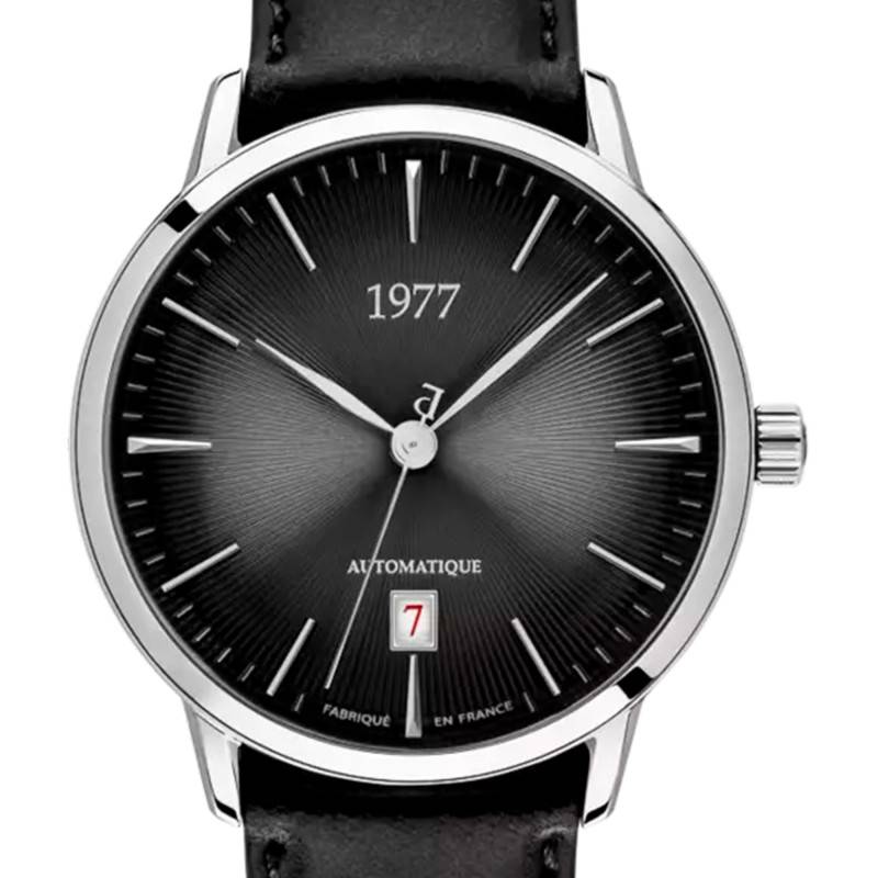Le cadran séduit par son effet fumé et sa finition soleillée, qui capturent la lumière. De fines stries s'étendent du centre, créant une profondeur visuelle. Ce jeu de textures met en avant les aiguilles feuilles argentées, qui marquent les heures, minutes et secondes avec précision. Les index offrent une lecture facile, tandis que le guichet date à la position 6 heures s'ajoute à la fonctionnalité sans troubler l'harmonie visuelle du cadran. La protection en verre saphir assure une durabilité optimale, résistant efficacement aux rayures.