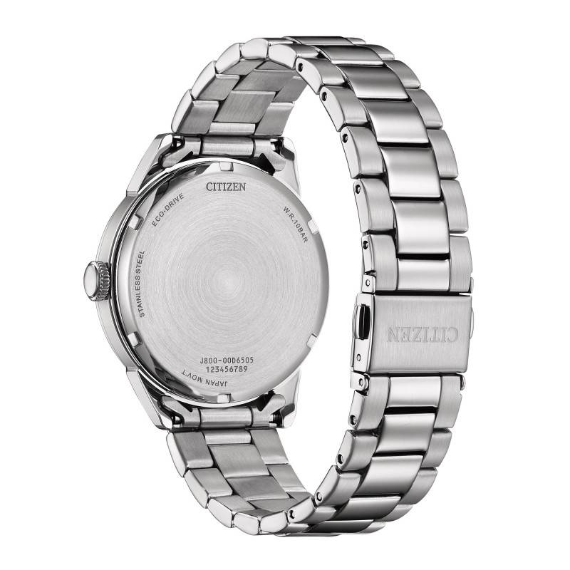La montre intègre le mouvement Eco-Drive Solaire, reflet de l'engagement de Citizen pour une horlogerie durable. Ce mécanisme japonais, inscrit dans l'ère écologique, transforme la lumière naturelle ou artificielle en énergie grâce à sa technologie avancée, éliminant ainsi le besoin de remplacement fréquent de la batterie. Le calibre J800-CTM se distingue par sa fiabilité et sa capacité à offrir une réserve de marche impressionnante de 240 heures après une pleine charge, garantissant ainsi un fonctionnement continu et sans interruption. Les informations essentielles - heures, minutes, secondes, jours et dates - sont affichées avec une précision remarquable, grâce à ce système respectueux de l'environnement.