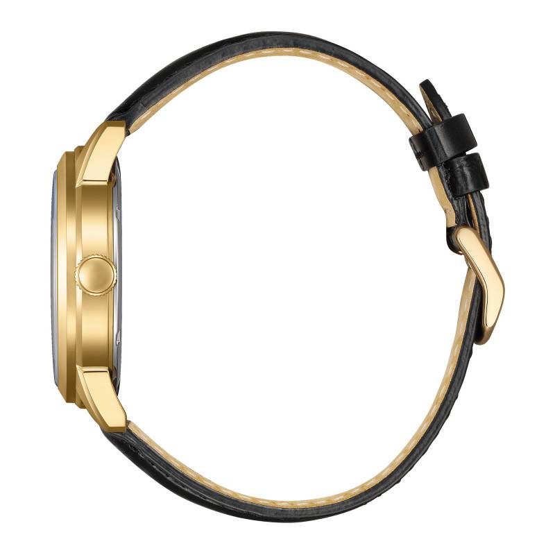 Le bracelet en cuir noir au motif crocodile confère à la montre une élégance classique et intemporelle. La surpiqûre fine souligne le cuir de haute qualité, ajoutant une tactile riche et subtile. Fermé par une boucle ardillon, il offre une sécurité parfaite tout en permettant une simplicité d'ajustement.
