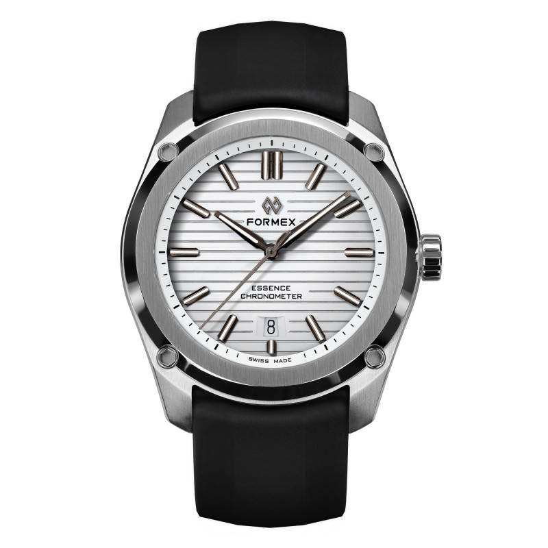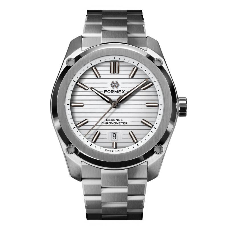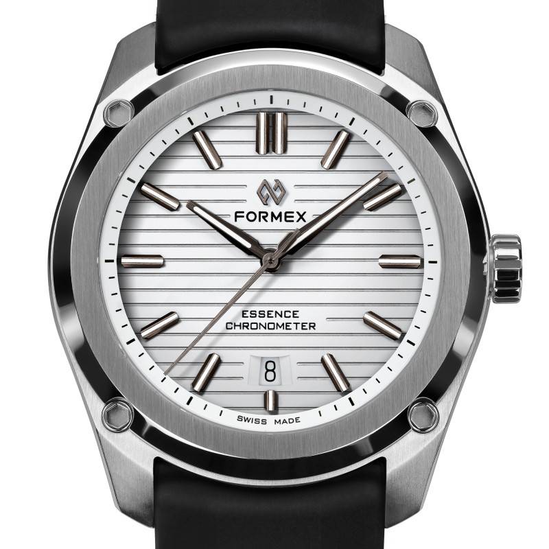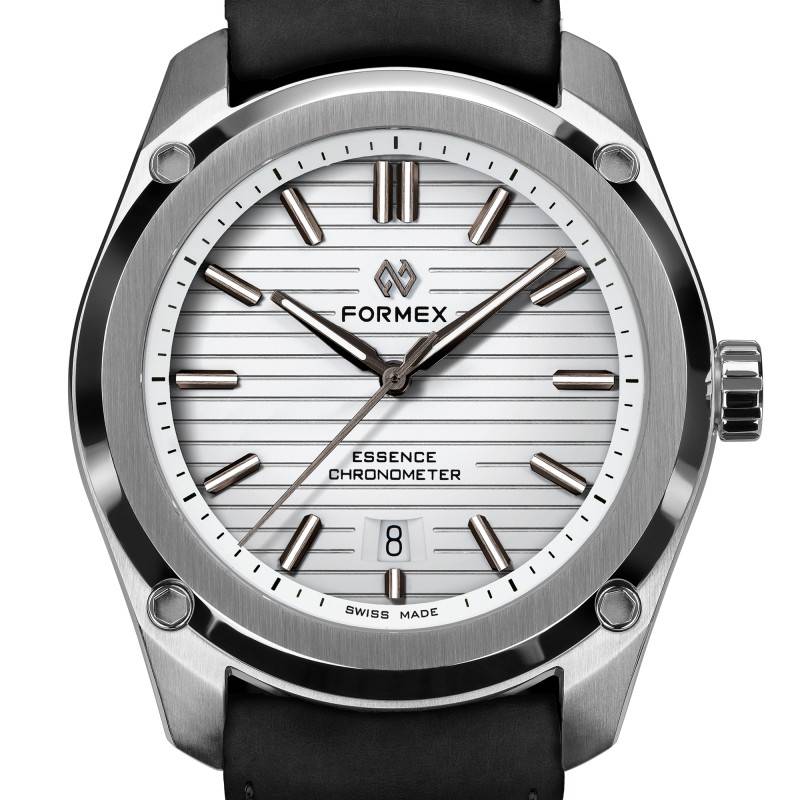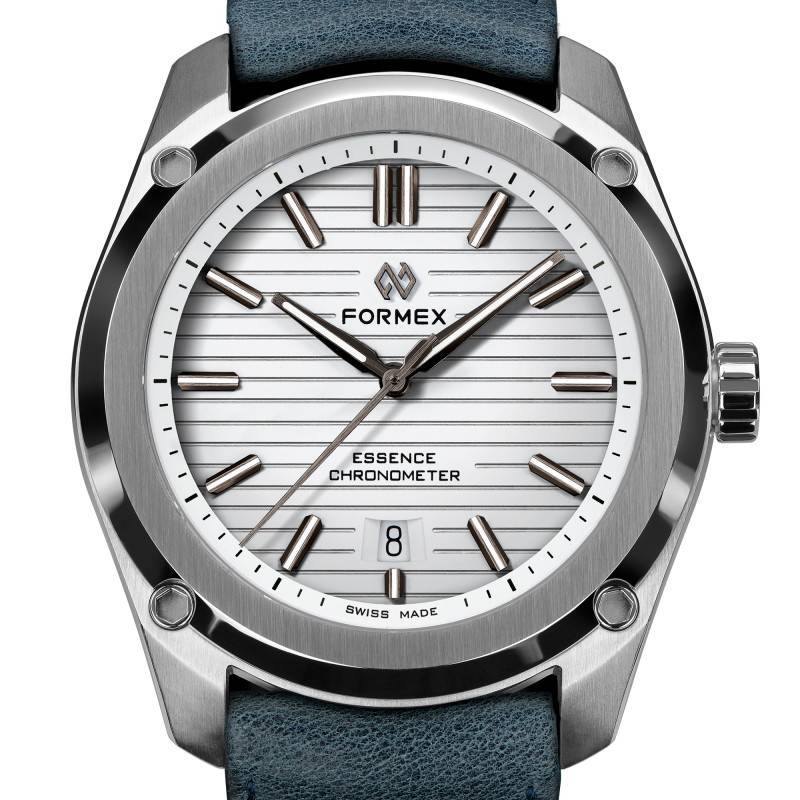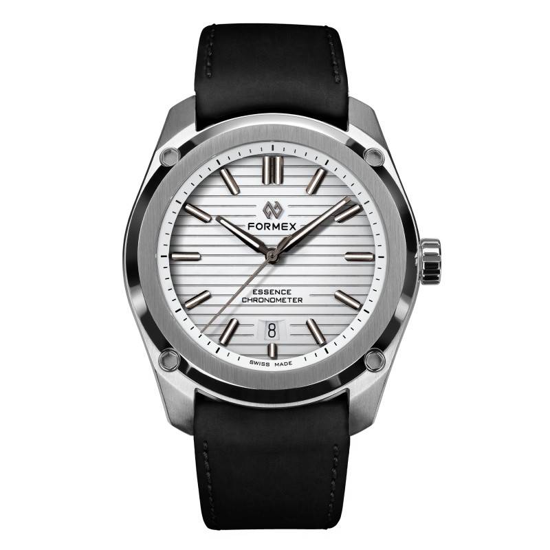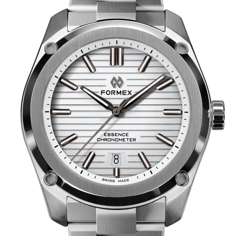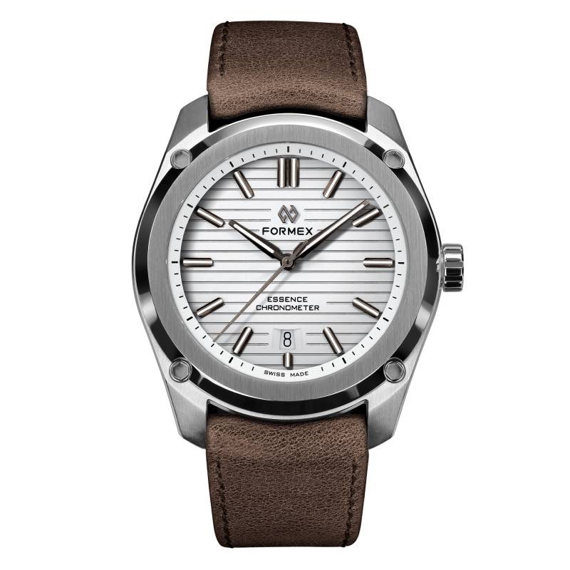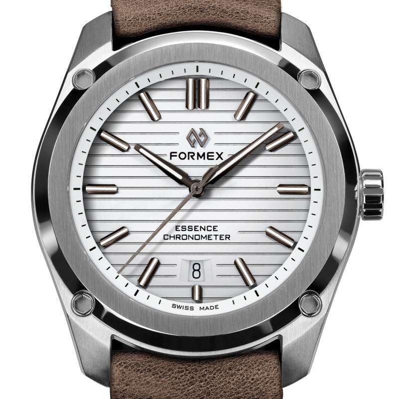 La montre Formex Essence 41mm Automatic COSC. En combinant un boîtier en acier inoxydable 316L avec un cœur de titane Grade 2, elle offre un équilibre entre robustesse et légèreté. La finition mate, obtenue grâce à un brossage soigné, apporte une touche d'élégance contemporaine. Ce modèle fabriqué en Suisse respecte les critères de qualité les plus exigeants, attestés par la certification COSC. Avec un diamètre de 41 mm et une épaisseur de 10,60 mm, ce garde-temps fait preuve d'une remarquable puissance esthétique. Le fond de la montre est maintenu par des vis et est transparent, ce qui permet aux passionnés d'admirer le mouvement complexe en action.