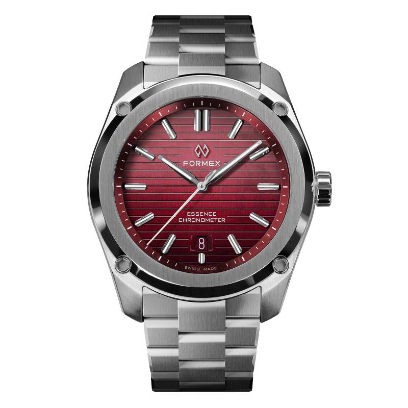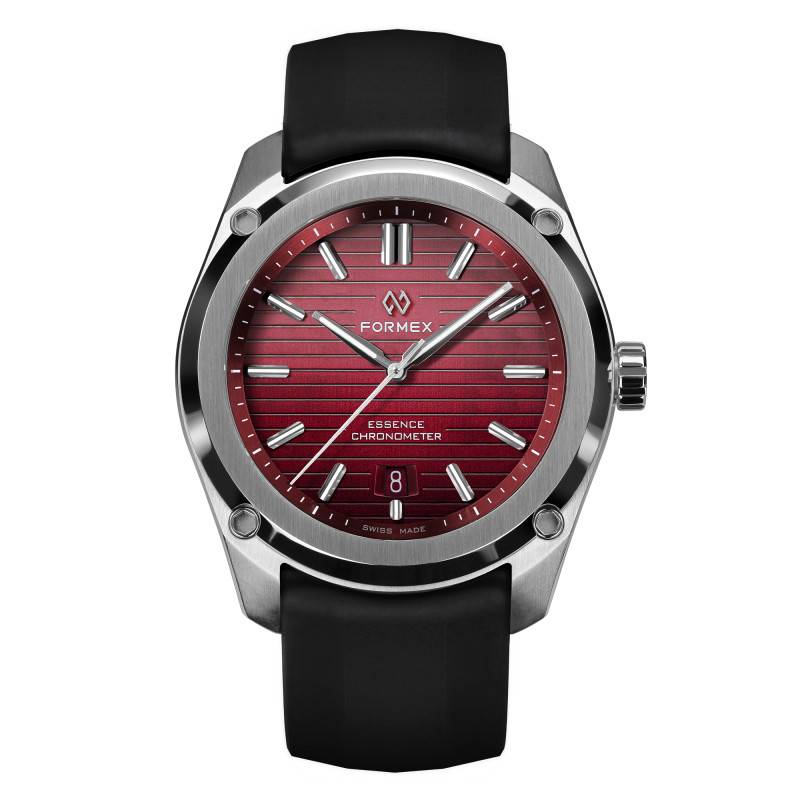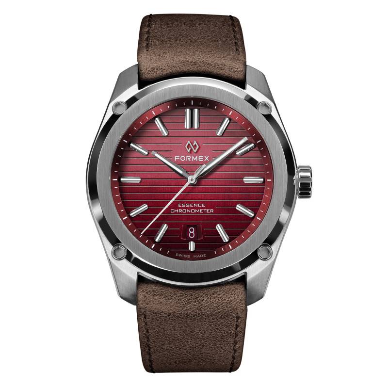 La montre Formex Essence 41mm Automatic COSC Gamaret est un parfait exemple de design horloger sophistiqué avec son boîtier en acier inoxydable 316L de forme ronde, offrant une robustesse et une élégance sans pareille. Le boîtier a un diamètre de 41 mm et une épaisseur de 10,60 mm, ce qui assure une présence affirmée au poignet tout en restant confortable grâce à un poids de 65 g. Son design intègre des lignes nettes et précises, accentuées par une finition mate (brossée/satinée) qui confère une allure moderne et intemporelle. Bien que le titane grade 2 ne soit pas visible, sa présence à l'intérieur du boîtier assure légèreté et durabilité accrue.
