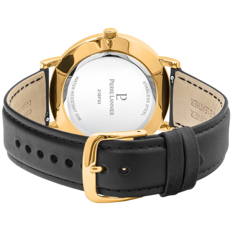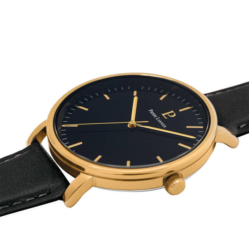 Grâce à son savoir-faire hors pair, la marque Pierre Lannier confectionne des montres qui sont portées dans les 4 coins du monde. Passionnée et innovatrice, cette marque française vous propose des modèles hautement équipés dont les designs séduisent les amateurs de belle horlogerie. Découvrez la nouvelle montre Essential 218F033 conçue pour la gent masculine. Soigneusement élaborée, elle se pare d'un boîtier rond qui est fabriqué en acier inoxydable doré. Celui-ci arbore un charmant fini poli qui lui accorde une allure brillante en plus de sa résistance. Il mesure 40,50 mm de diamètre et une épaisseur de 7,95 mm et dispose d'un verre minéral qui couvre son cadran. Il est doté d'une couronne de ton or et crantée qui a pour rôle de manier les éléments centraux. Pour finir, cette monte de 47 grammes dispose d'une étanchéité de 5 ATM qui est assurée par son fond emboîté.