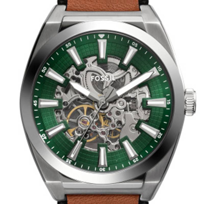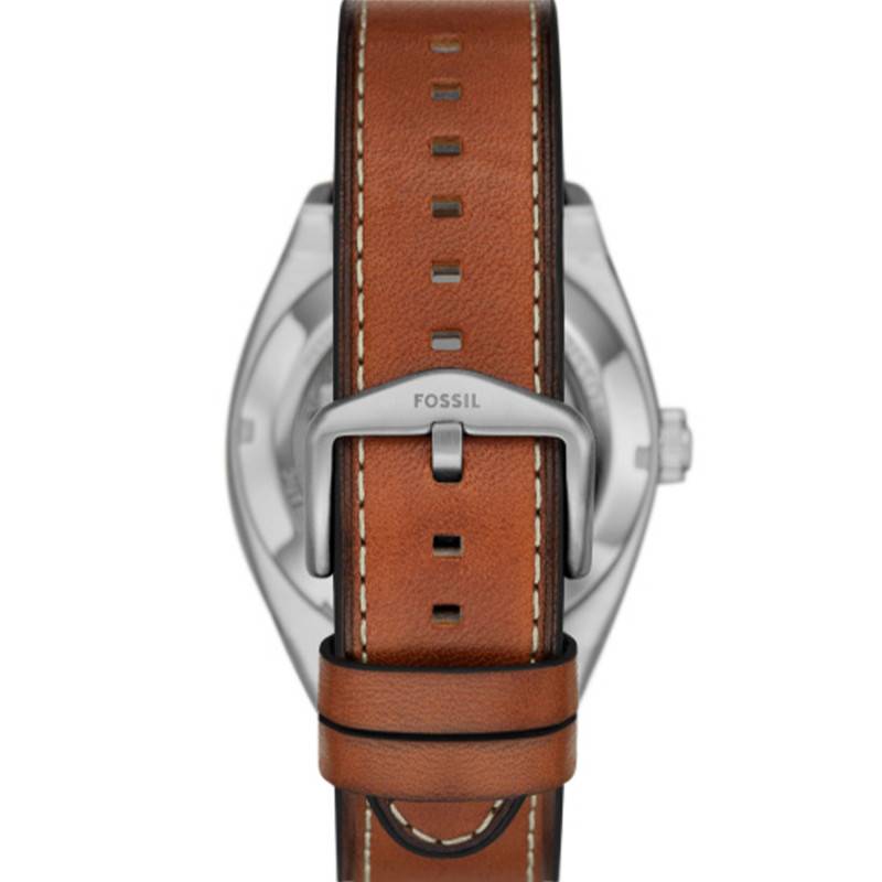 La montre Everett de Fossil incarne parfaitement l'élégance moderne associée à une fonctionnalité pratique. Ce modèle pour homme arbore un boîtier rond de 42 mm de diamètre en acier inoxydable, offrant une robustesse assurée par la finition PVD gris. Le design de ce garde-temps se distingue par sa capacité à allier sophistication et accessibilité, grâce au trône de ses composants de haute qualité. Le boîtier est complété par un fond transparent et vissé, permettant d'admirer le mouvement en action tout en garantissant une protection optimale. La couleur dominante du boîtier est un gris raffiné, qui se marie harmonieusement avec le vert éclatant du cadran et le marron chaud du bracelet. Le bouton remontoir unique sur le côté droit du boîtier est subtilement intégré, offrant à la fois une facilité d'utilisation et un look épuré et contemporain.