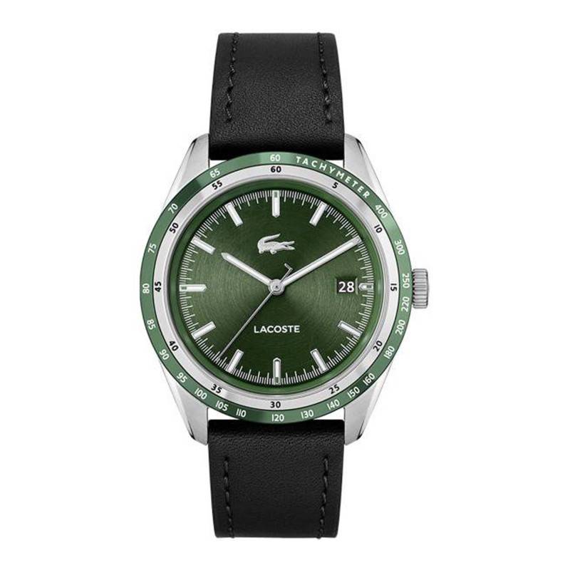 Créée par la légende du tennis français René Lacoste, la marque Lacoste a su se démarquer grâce à ses créations aux allures sport-chic. Ayant décidé de diversifier ses domaines d'activités, elle propose à travers ses collections des garde-temps avant-gardistes et contemporains à l'allure chic qui iront à merveille avec toutes vos tenues. La montre Everett Verte 2011292 incarne parfaitement l'héritage sportif et l'ADN de la marque. Elle est dotée d'un boîtier rond de 40 mm de diamètre et de 10 mm d'épaisseur. Il est conçu en acier inoxydable et affiche une alternance harmonieuse de finitions polies et brossées qui accentuent son allure élégante. Celui-ci accueille une lunette dotée d'un insert en aluminium de couleur verte marqué par une échelle tachymétrique qui entoure une échelle des minutes marquée en noir. Son cadran est recouvert par un verre minéral plat et vous trouverez à 3 heures une couronne crantée de couleur argentée qui assure le réglage des heures, des minutes et de la date. Pour finir, le fond de boîte assure une étanchéité de 5 ATM.