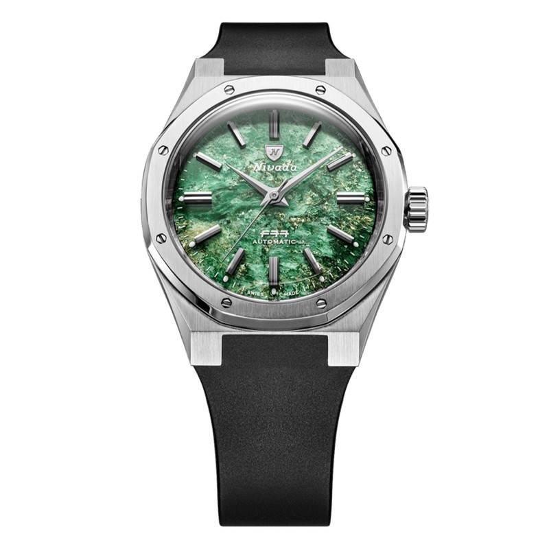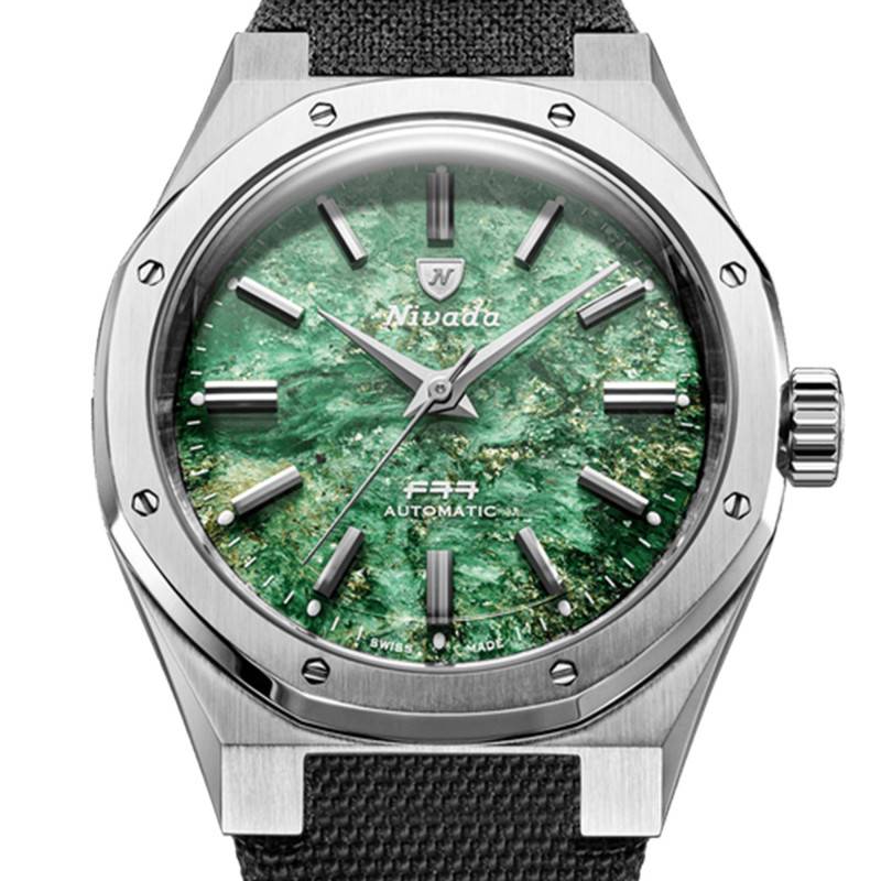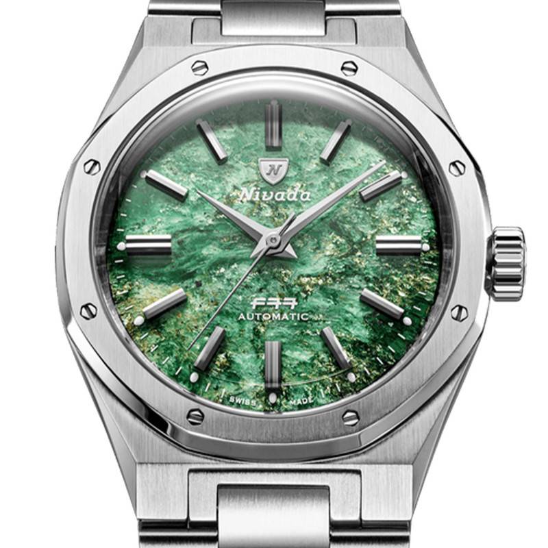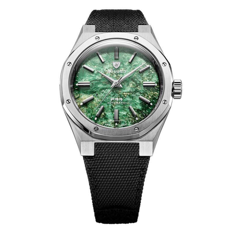 La Nivada Grenchen F77 MKII SST Green Aventurine incarne l'essence de l'horlogerie suisse de précision. Ce garde-temps, fabriqué avec un boîtier en acier inoxydable brossé, offre une résistance et une durabilité exceptionnelles. La finition mate du boîtier complète parfaitement le cadran aventurine, lui conférant une allure élégante et distinguée qui saura séduire les amateurs d'horlogerie. Avec un diamètre de 38 mm et une épaisseur de 11,5 mm, la montre présente un équilibre parfait entre style et confort, idéale pour ceux qui cherchent une montre à la fois raffinée et discrète. La couronne vissée assure une protection supplémentaire contre l'eau et la poussière, indispensable pour une montre de ce calibre.
