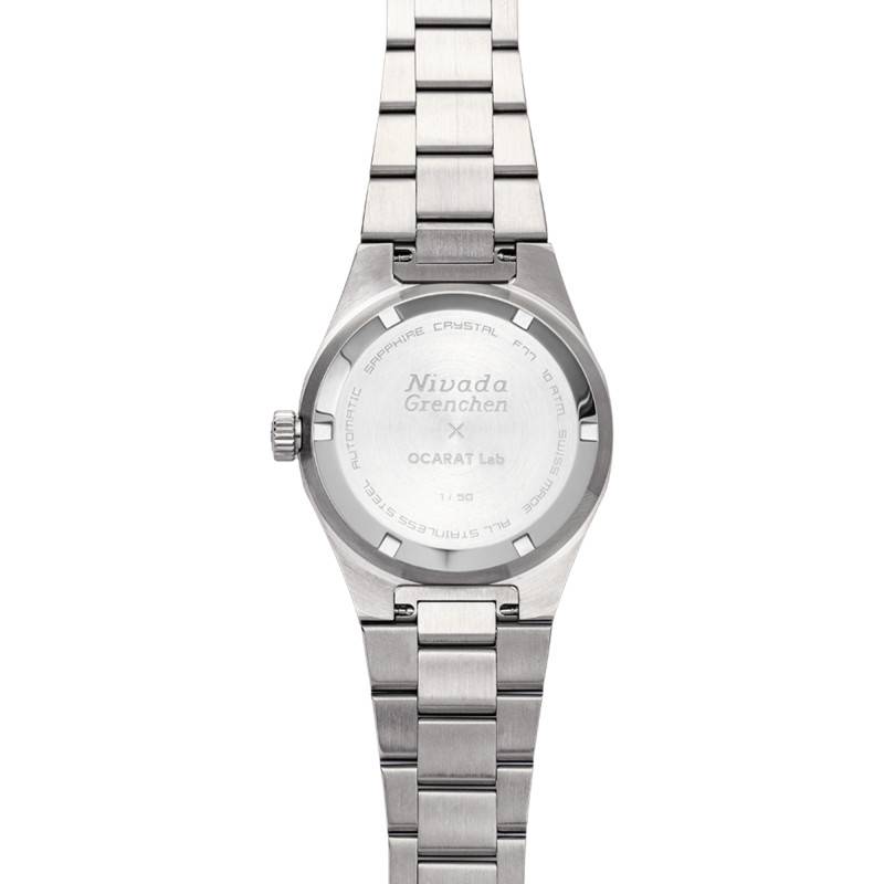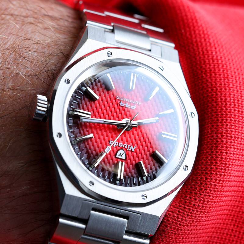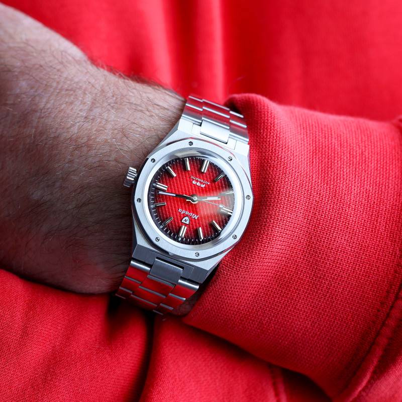 Nivada Grenchen et Ocarat vous dévoilent une nouvelle collaboration en édition limitée à 50 exemplaires numérotés : la montre F77 Smoked Red Nivada x Ocarat Limited Edition. Cette montre incarne l'élégance et le savoir-faire de l'horlogerie suisse et représente une pièce de collection unique réservée aux vrais connaisseurs. Robuste et raffiné, son boîtier de 37 mm de diamètre pour 11.65 mm d'épaisseur en acier inoxydable 316L avec finition polie et brossée. Ce modèle est reconnaissable par son design de forme tonneau, une structure qui s'adapte parfaitement au poignet tout en offrant un style vintage réinventé. La couronne vissée présente à 3h arbore le logo en relief de la maison Nivada. Cette montre est équipée d'un fond vissé en acier pour assurer une protection optimale du mécanisme. Celui-ci porte la mention Nivada Grenchen X Ocarat Lab et le numéro de la montre.