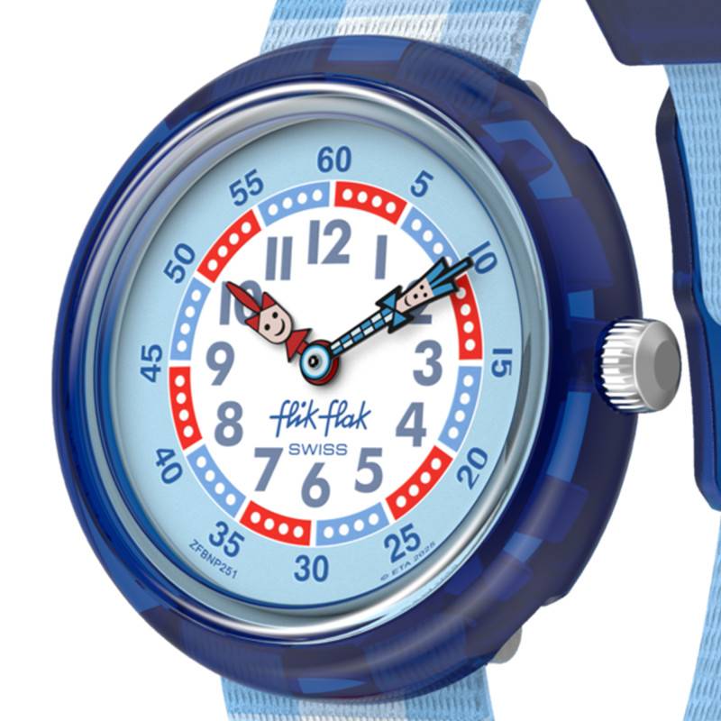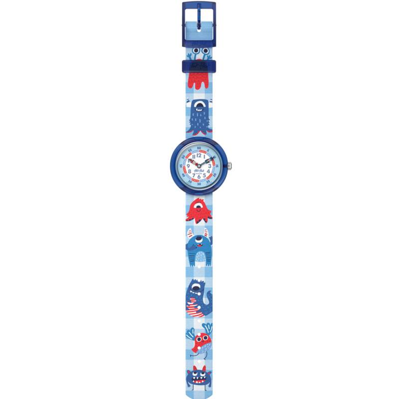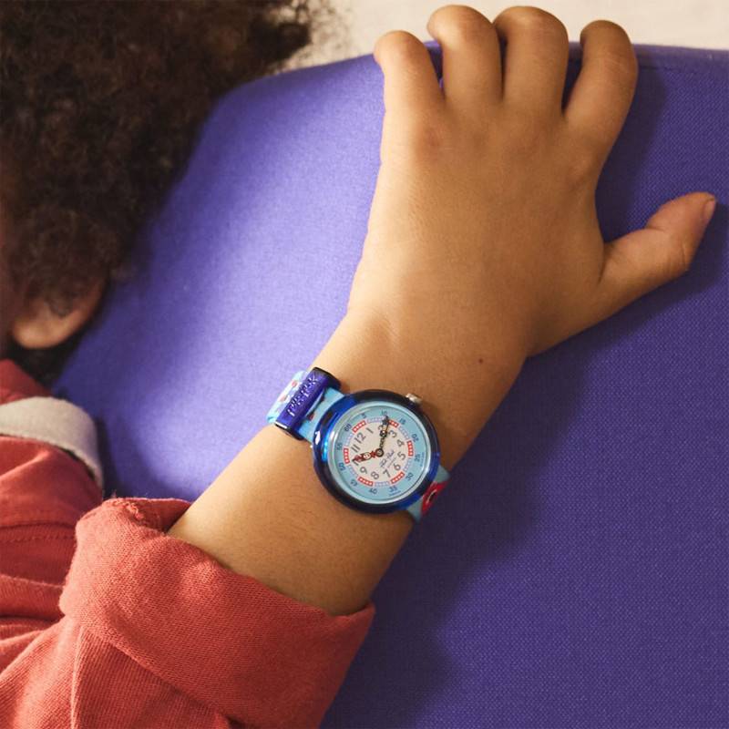 La montre Fear Me Not! FBNP251 de la marque Flik Flak, est un garde-temps dédié aux enfants, arborant un design captivant et dynamique grâce à sa teinte bleue vive. Son boîtier rond est soigneusement fabriqué en matériau biosourcé, reflétant un engagement écologique tout en offrant une résistance adaptée aux petites aventures quotidiennes des enfants. Avec un diamètre de 31,85 mm, elle s'ajuste parfaitement aux poignets des plus jeunes, présentant une taille idéale pour un confort d'utilisation optimal. Le verre, également en matériaux biosourcés, offre une protection efficace au cadran tout en renforçant l'impact environnemental réduit de cette montre.