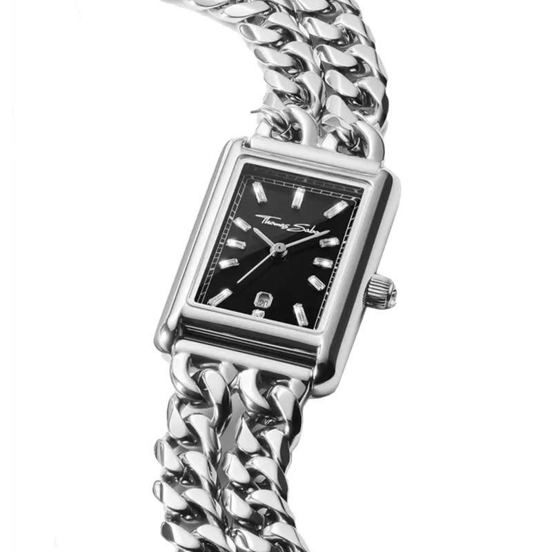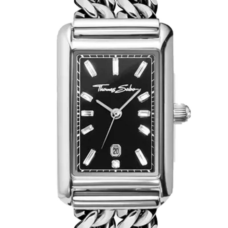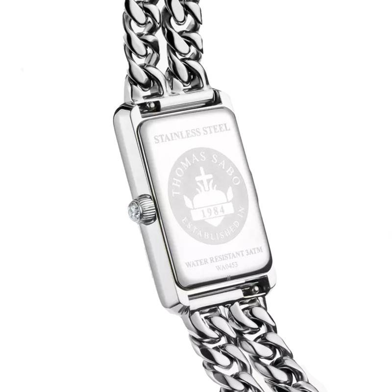 La montre pour femme Bold Elegance de Thomas Sabo est une pièce séduisante qui incarne l'élégance intemporelle. Conçue avec un boîtier rectangulaire en acier inoxydable de 22 mm, elle se distingue par son style à la fois moderne et classique. Son acier inoxydable de haute qualité garantit non seulement une robustesse exceptionnelle mais aussi une finition polie et brillante qui capte la lumière sous tous les angles, ajoutant une touche sophistiquée à votre poignet. Équipée d'une lunette en acier, cette pièce illustre un équilibre parfait entre esthétique et fonctionnalité. Le fond de boîte est emboîté, offrant une étanchéité de 3 ATM, pratique pour une utilisation quotidienne résistante aux éclaboussures.