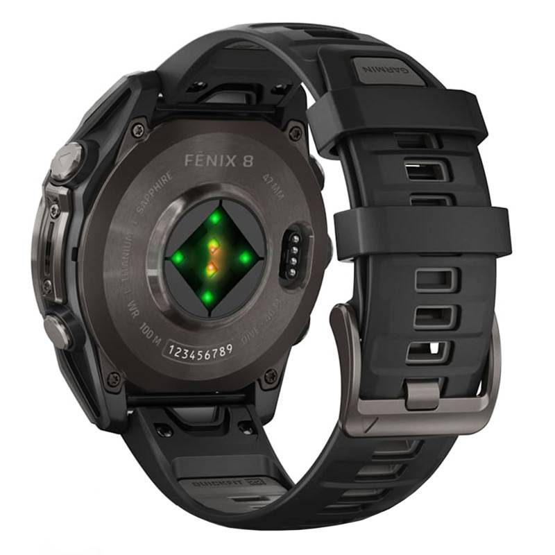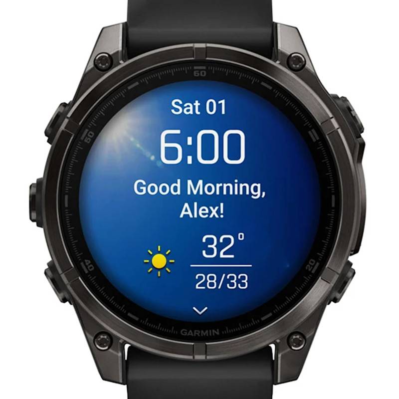 Avec un cadran d'un noir profond, la Fēnix 8 se distingue par son affichage digital AMOLED de haute qualité grâce à la technologie AMOLED. Ce type d'affichage offre une clarté et un contraste exceptionnels, permettant une lisibilité irréprochable quelles que soient les conditions de luminosité. Protégé par un verre saphir plat, le cadran est non seulement résistant aux rayures, mais aussi élégant, assurant une protection infaillible tout en offrant une esthétique raffinée. En plus de l'esthétique, la montre propose un écran tactile intuitif qui vous permet de naviguer facilement entre ses nombreuses fonctionnalités. Dans le monde des montres connectées, ce modèle incarne l'harmonie parfaite entre discrétion et sophistication, avec une allure résolument contemporaine.