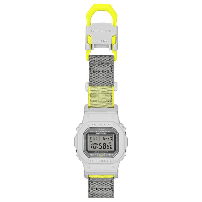 Le bracelet de cette Casio G-Shock est à la pointe de l’innovation, fabriqué dans une matière synthétique résistante, combinant une teinte grise élégante avec des touches de jaune pour un effet visuel dynamique. Il est spécialement conçu pour offrir à la fois confort et adaptabilité grâce à son fermoir Velcro ajustable, permettant un ajustement optimal quel que soit le poignet.