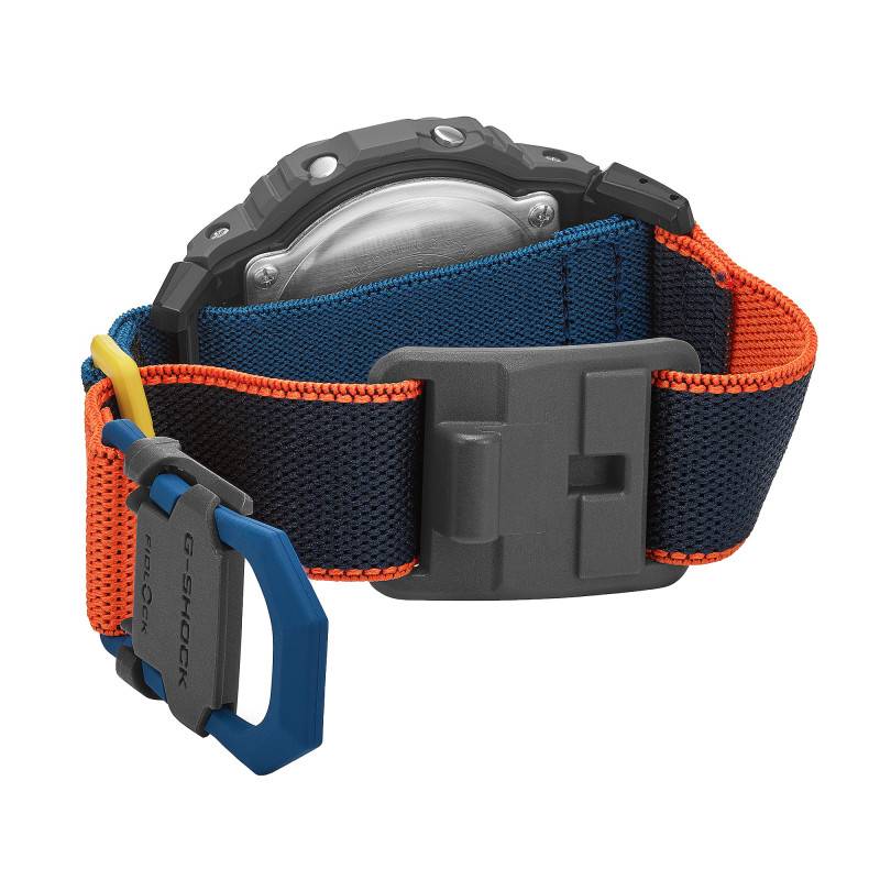 Le bracelet est une autre preuve de l'ingéniosité et du design fonctionnel de cette montre. Fabriqué en matière synthétique, il se distingue par sa palette de couleurs audacieuses : bleu, noir et orange. Le fermoir velcro ajustable assure un ajustement parfait au poignet, apportant à la fois confort et stabilité.