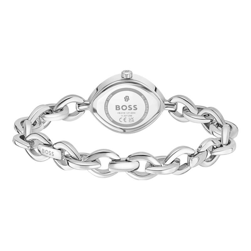 La montre Fiora de la marque Boss est une pièce d'exception qui se distingue par son design délicat et raffiné. Conçue pour les femmes, cette montre arbore un boîtier ovale en acier inoxydable de dimensions parfaites, avec un diamètre de 22 mm et une épaisseur de 7 mm. Le boîtier présente une finition polie et brillante qui capte la lumière de manière sublime, accentuant encore davantage l'élégance de ce garde-temps. Sa légèreté est l'une de ses forces : pesant seulement 50 g, elle s'adapte confortablement à votre poignet pour une utilisation quotidienne ou pour des occasions spéciales. La lunette en acier complète parfaitement l'ensemble, soulignant encore plus sa beauté intemporelle.
