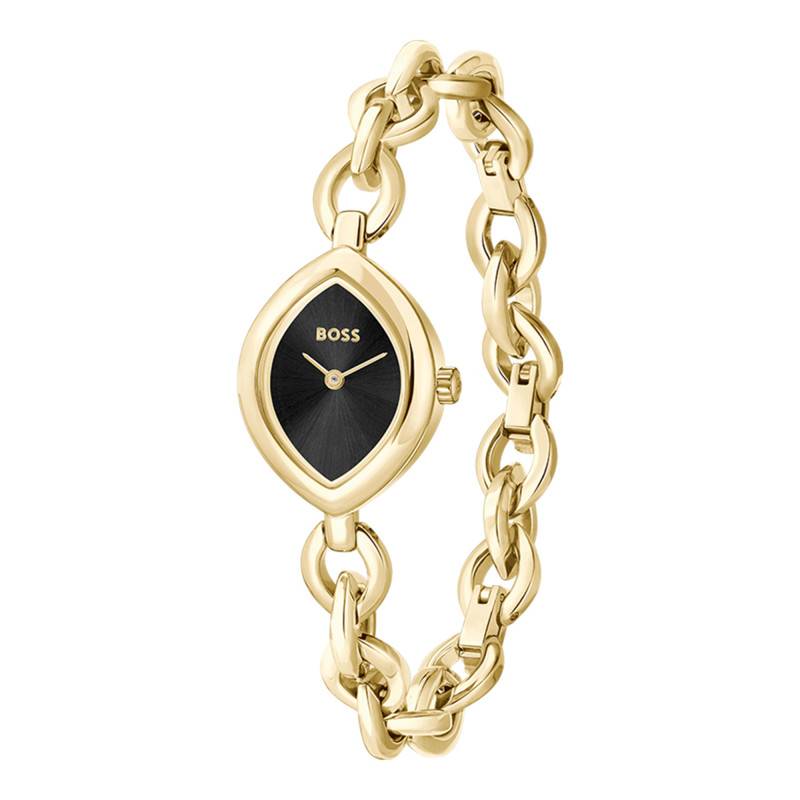 La montre Montre Fiora 1502838 de Boss est une expression pure de sophistication et de féminité. Son boîtier ovale, d'un diamètre gracieux de 22 mm, est conçu en acier inoxydable avec une finition polie et brillante qui attire immédiatement le regard par son éclat. L'épaisseur subtile de 7 mm garantit une élégance discrète tout en conservant toute sa présence au poignet. Ce garde-temps, pesant 50 g, s'accompagne d'un fond de boîte emboîté qui assure une allure épurée parfaite. L'ensemble du boîtier est protégé par un verre minéral, facilitant la lecture de l'heure tout en solidifiant l'ensemble contre les chocs du quotidien.