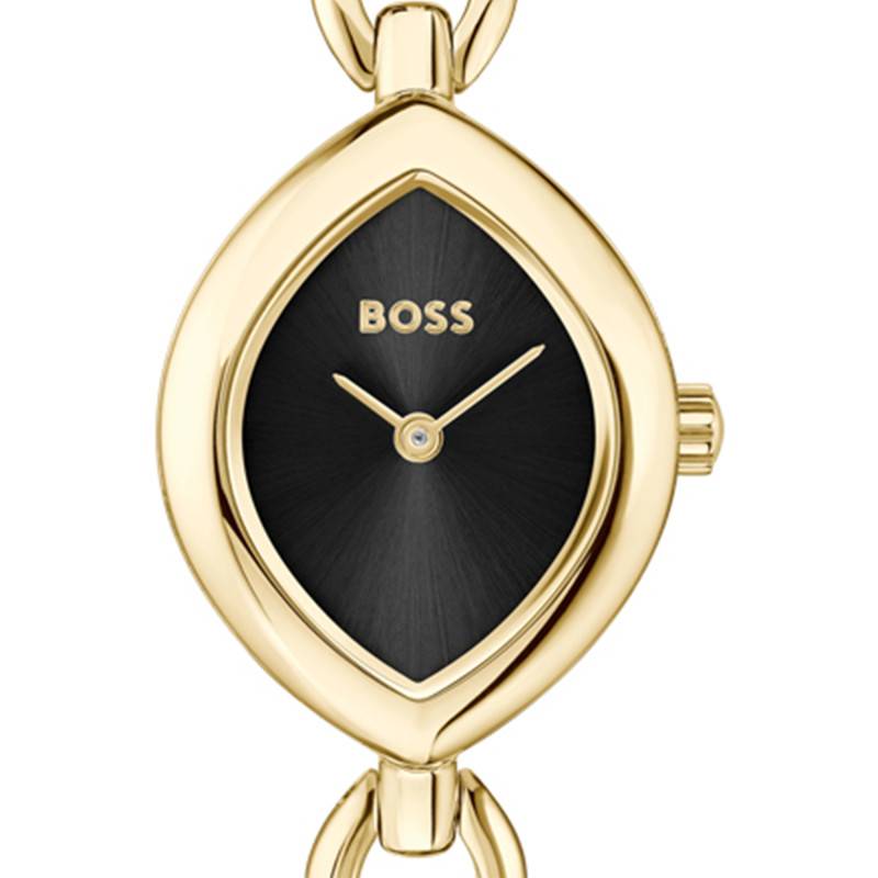 La montre Montre Fiora 1502838 de Boss est une expression pure de sophistication et de féminité. Son boîtier ovale, d'un diamètre gracieux de 22 mm, est conçu en acier inoxydable avec une finition polie et brillante qui attire immédiatement le regard par son éclat. L'épaisseur subtile de 7 mm garantit une élégance discrète tout en conservant toute sa présence au poignet. Ce garde-temps, pesant 50 g, s'accompagne d'un fond de boîte emboîté qui assure une allure épurée parfaite. L'ensemble du boîtier est protégé par un verre minéral, facilitant la lecture de l'heure tout en solidifiant l'ensemble contre les chocs du quotidien.