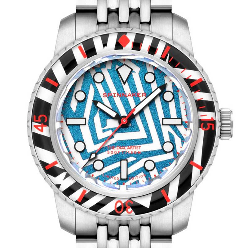 La montre Spinnaker Fleuss 40 Automatic Razzle Dazzle Limited Edition se distingue par son design audacieux et ses caractéristiques techniques de haute qualité. Fabriquée en acier inoxydable, elle combine l'élégance d'une finition mate et polie raffinée avec la robustesse nécessaire pour une utilisation quotidienne. Le boîtier, de 40 mm de diamètre et d'une épaisseur de 14 mm, est parfaitement proportionné pour offrir une lecture claire et précise tout en restant confortablement fixé au poignet. Le choix du verre est crucial pour garantir durabilité et esthétique, et cette montre n'échappe pas à cette règle grâce à son verre saphir résistant aux rayures. La présence d'une lunette uni-directionnelle avec des marqueurs luminescents augmente la fonctionnalité de cette montre et permet un calcul rapide et facile, tout en soulignant son style contemporain. Ce modèle est limité à seulement 500 exemplaires numérotés, renforçant ainsi son exclusivité et son attrait pour les collectionneurs avertis.