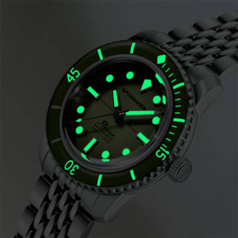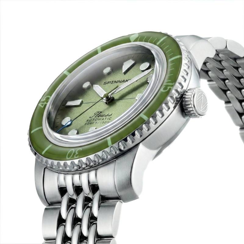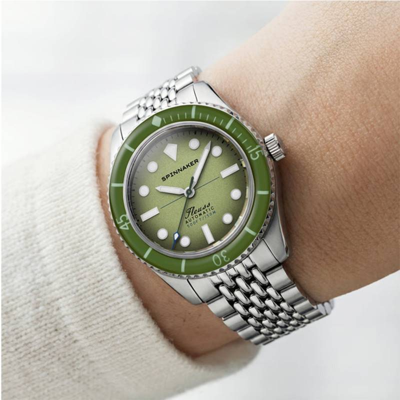 La montre Spinnaker Fleuss 40 Automatic Pine Crest est une montre dont le boîtier est fabriqué en acier inoxydable, combinant à la fois résistance et élégance. Ce matériau a la particularité d'être à la fois durable et esthétiquement plaisant, offrant une finition mate et brossée qui confère une allure sophistiquée. Le design du boîtier, de forme ronde, avec un diamètre de 40 mm et une épaisseur de 11 mm, permet à ce garde-temps de s'adapter confortablement aux poignets. Grâce à son poids de 190 grammes, elle procure une sensation de solidité sans être opulente. La montre est équipée d'une lunette rotative et unidirectionnelle en acier.