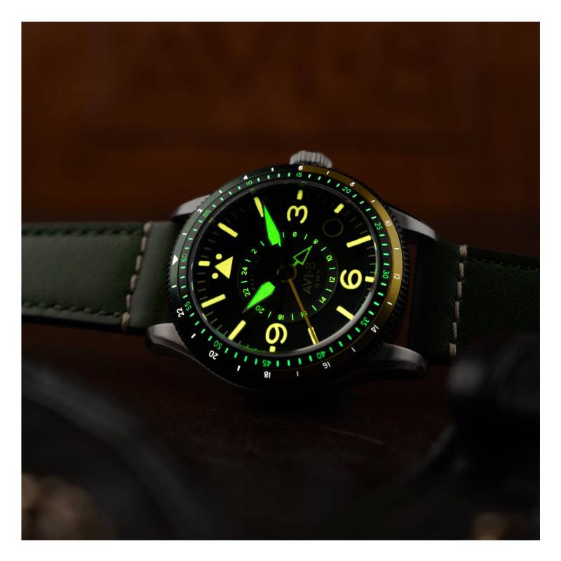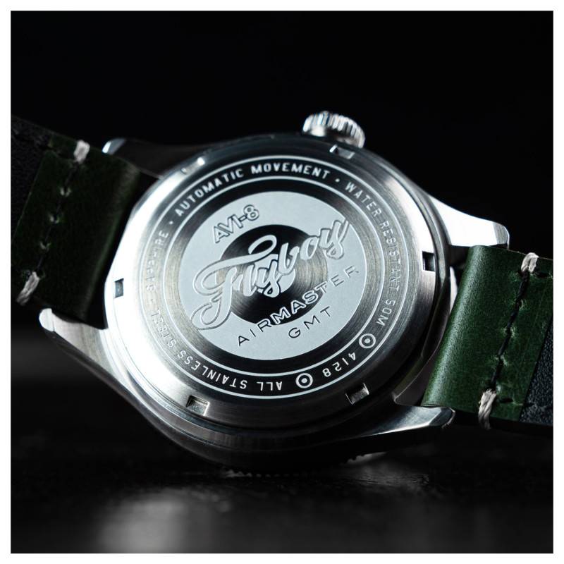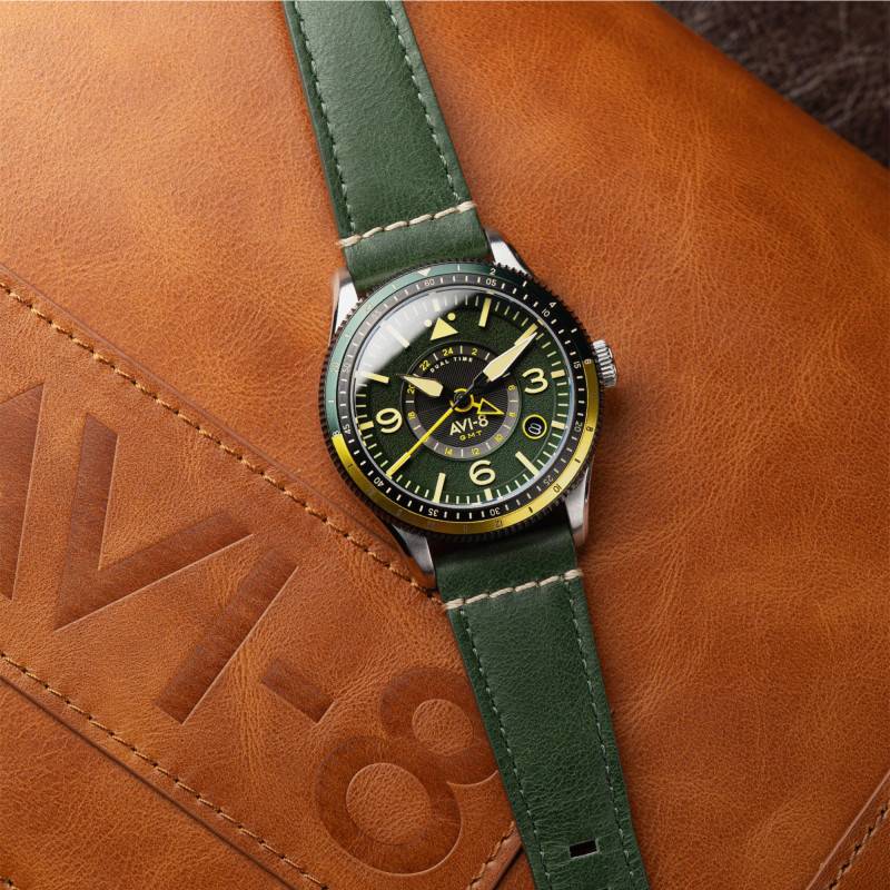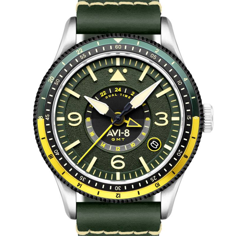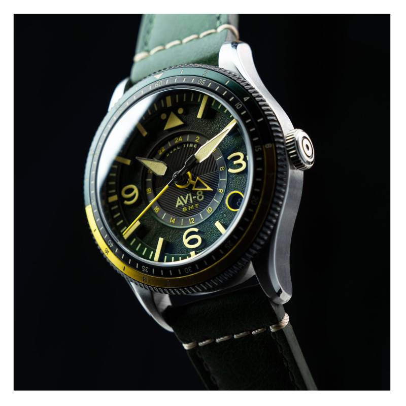 La montre Flyboy Airmaster GMT Automatic Fuselage Green, une création sublime d'Avi-8, s'impose comme un symbole de sophistication et de robustesse en horlogerie. Conçue pour les hommes, elle présente un boîtier rond en acier inoxydable, connu pour sa résistance exceptionnelle et sa durabilité. Mesurant 40 mm de diamètre et affichant une épaisseur de 15 mm, elle se porte avec distinction au poignet. La montre est équipée d'un verre saphir plat et bénéficie d'un traitement antireflets, garantissant une visibilité parfaite quelle que soit la luminosité ambiante. Le fond de boîte est vissé, assurant une étanchéité efficace jusqu'à 5 ATM. Ce caractère à la fois esthétique et fonctionnel en fait un accessoire de choix pour les amateurs de montres de qualité.