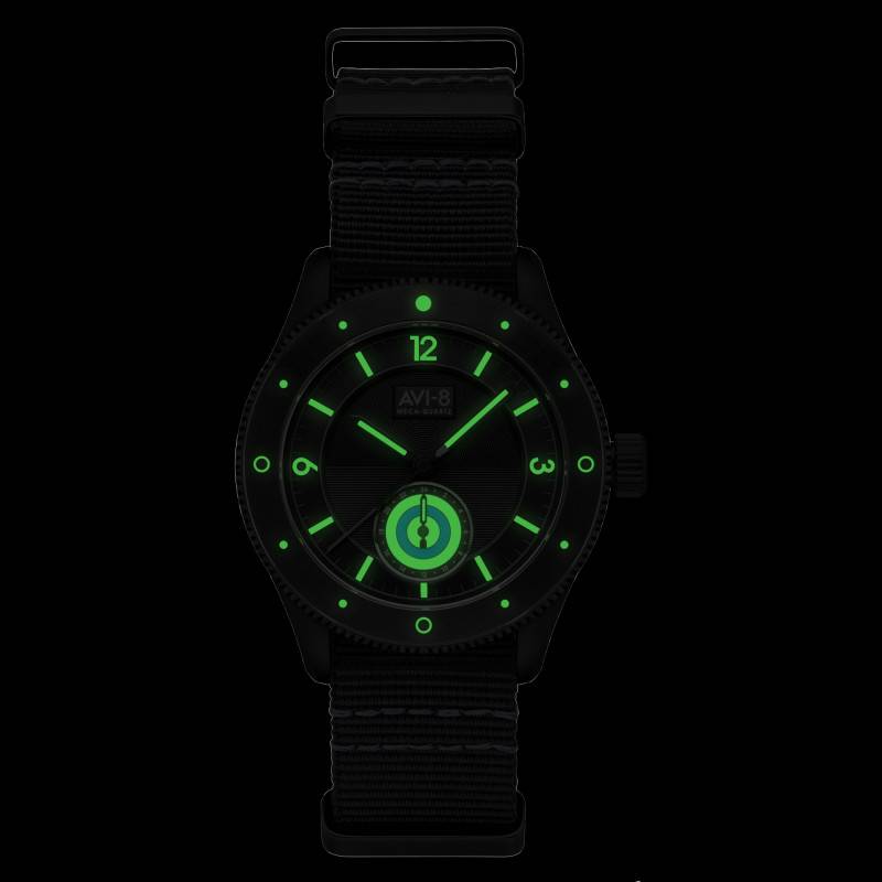 Présente sur le marché de l'horlogerie depuis 2012, Avi-8 est une jeune marque britannique qui a pu se faire un nom grâce à ses créations horlogères de haute qualité, élégantes et modernes, accessibles à des prix imbattables. Commémorant l'ingénierie de l'aéronautique, l'héroïsme et l'histoire des pilotes, chacune de ses montres retranscrit l'ADN technique de l'univers de l'aviation, offrant à son propriétaire une expérience horlogère d'exception. Issu de la collection Flyboy, ce captivant garde-temps Sector 40 AV-4112-05 au total look noir saura conquérir le cœur des hommes élégants et modernes, comme vous, en devenant leur allié fidèle et stylé du quotidien. Fabriqué en édition limitée, il arbore un design sport-chic et une finition délicate avec une haute performance afin de vous accompagner tous les jours en vous démarquant. Son boîtier de forme ronde mesure 40 mm de diamètre, convenant parfaitement à toutes les tailles de poignet. Agréable et confortable à porter, il est fabriqué en acier inoxydable avec une finition mate qui, mettant en valeur sa couleur noire, lui accorde une touche de brillance sophistiquée. Le cadran est surmonté par un verre minéral traité antireflet qui vous assurera une agréable lisibilité sous tous les angles. Ce dernier est entouré par une lunette rotative au design cranté qui vous permettra selon vos envies de mesurer le temps écoulé ou de lire l'heure d'un second fuseau horaire. Cela est assuré par des différentes graduations rondes luminescentes disposées sur son insert noir en aluminium. Vous pourrez régler l'heure à tout moment par le biais de la couronne crantée de couleur noire placée à 3h. Finalement, ce garde-temps dispose d'un fond de boîte vissé qui lui assure une étanchéité de 5 ATM.
