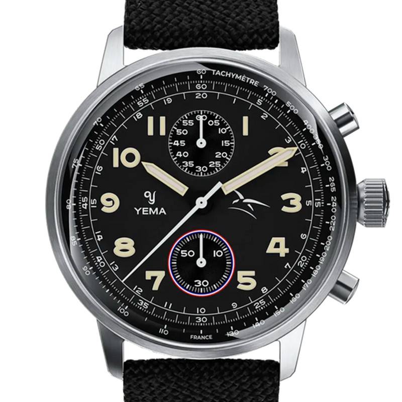 Yema est une marque horlogère française qui incarne l'excellence et l'innovation depuis sa création en 1948. Ses garde-temps se distinguent par leur qualité et sont spécialement conçus pour les militaires, les astronautes, les sportifs et les explorateurs. Elle lance la montre Flygraf AAE YMHF1582AA-AA en collaboration avec l'armée de l'Air & de l'Espace qui saura répondre en tout point à vos attentes tout en vous communiquant le temps avec facilité. Inspirée de l'univers de l'aviation militaire française, ce modèle fait preuve de qualité, d'une grande précision, de rigueur et d'audace. Son boîtier rond est conçu en acier inoxydable 316L et offre robustesse et durabilité. Sa finition satinée, très bien réussie, s'harmonise avec sa couleur argentée et lui confère une allure plus sophistiquée. Parfaitement adapté à tous les poignets masculins, le boîtier affiche un diamètre de 40 mm et une épaisseur de 9,50 mm pour une longueur de corne à corne de 46 mm. Au-dessus, il accueille un verre hésalite bombé de 2 mm d'épaisseur qui lui accorde un aspect classique et qui favorisera une lecture aisée des éléments centraux. La couronne joliment siglée et crantée est surdimensionnée afin de permettre aux aviateurs de régler facilement les aiguilles, même avec des gants, ce qui est trop pratique pendant les vols. Celle-ci est accompagnée par deux boutons-poussoirs de part et d'autre qui assure la manipulation du chronographe. Pour ce qui est du fond de boîte, il est frappé à la presse hydraulique et présente une finition brossée sur le pourtour et un aspect grainé au centre qui est orné du logo de l'armée de l'Air & de l'Espace. Ce fond vissé promet une étanchéité de 10 ATM.