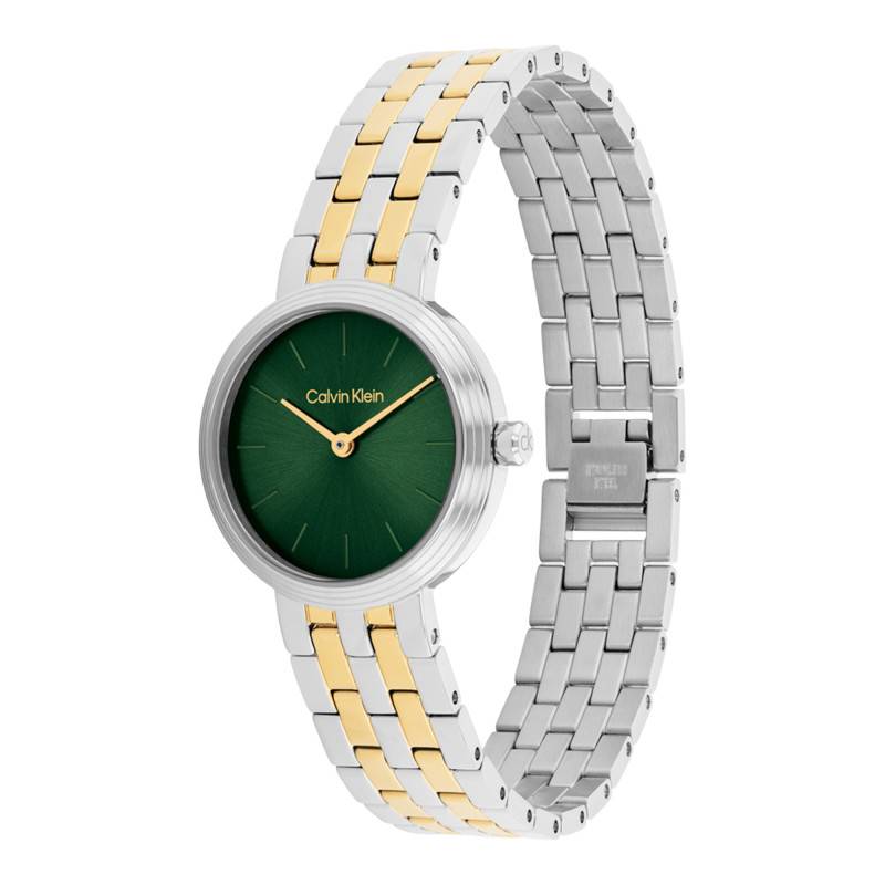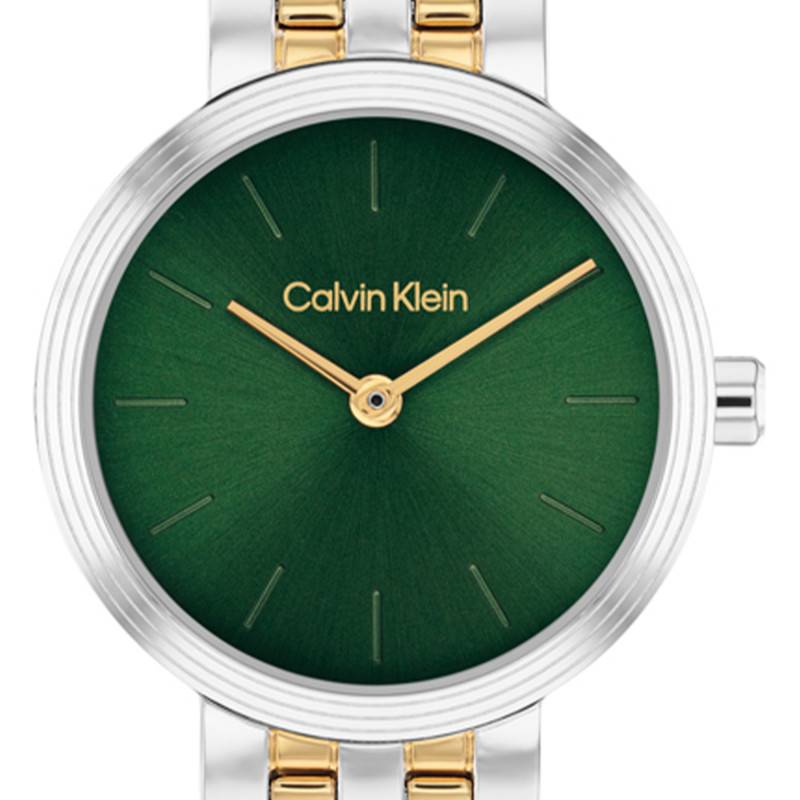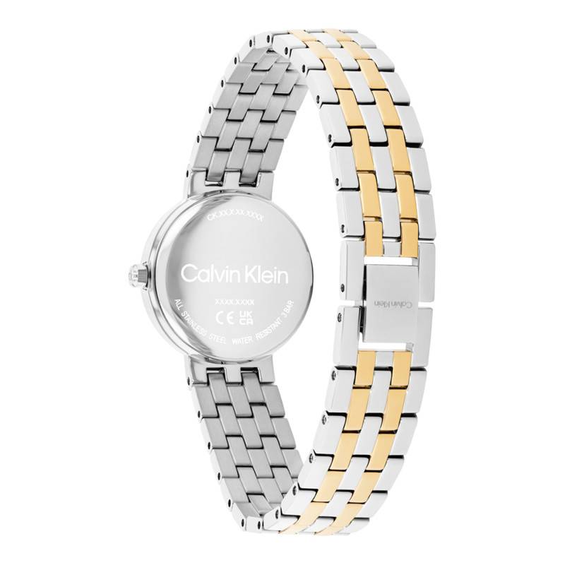 Explorez l'élégance de cette montre pour femme signée Calvin Klein, associant finesse et design moderne. Le boîtier rond en acier inoxydable révèle une esthétique épurée et contemporaine avec un diamètre de 26 mm et une épaisseur remarquable de seulement 7 mm. Ce modèle arbore une finition en PVD jaune, ajoutant une note précieuse qui sublime l'allure générale du boîtier. La lunette en acier accentue la robustesse tout en préservant la légèreté du garde-temps. Poids léger mais en mains, il inspire confiance avec ses 47 g, parfait pour un port quotidien et stylisé.