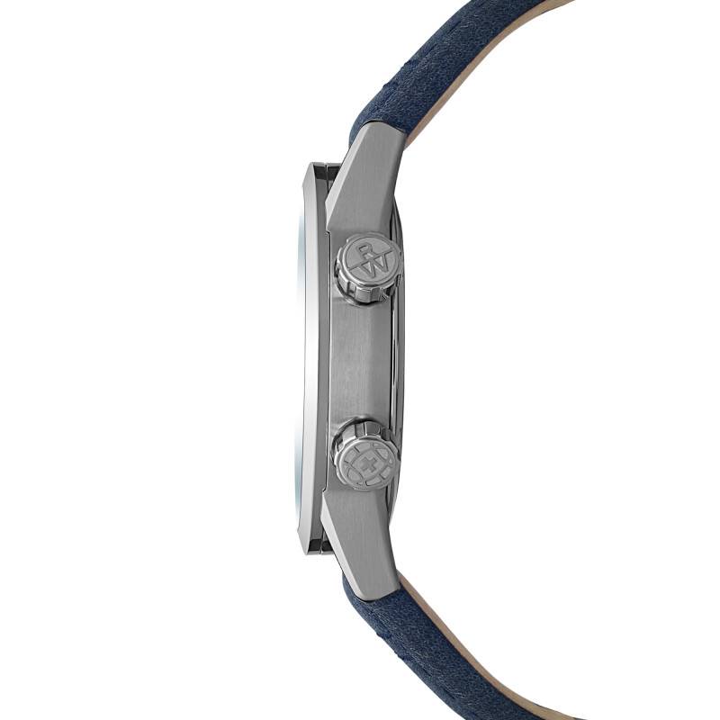 La montre est parée d'un bracelet en cuir de veau de couleur bleue, apportant une élégance intemporelle à l'ensemble. La surpiqûre ajoute une dimension visuelle supplémentaire, témoignant d'un effet artisanal auquel Raymond Weil veille scrupuleusement. Enfin, le bracelet est équipé d'une boucle déployante avec un fermoir de sécurité, alliant praticité, sécurité et souci du style.