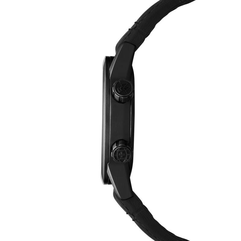 Le bracelet en cuir de veau noir complète dignement cette montre de luxe. Sa texture douce et ses surpiqûres soulignent une qualité supérieure, tandis que la boucle déployante assure un ajustement sécurisé et confortable au poignet