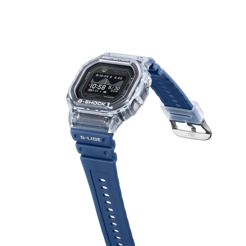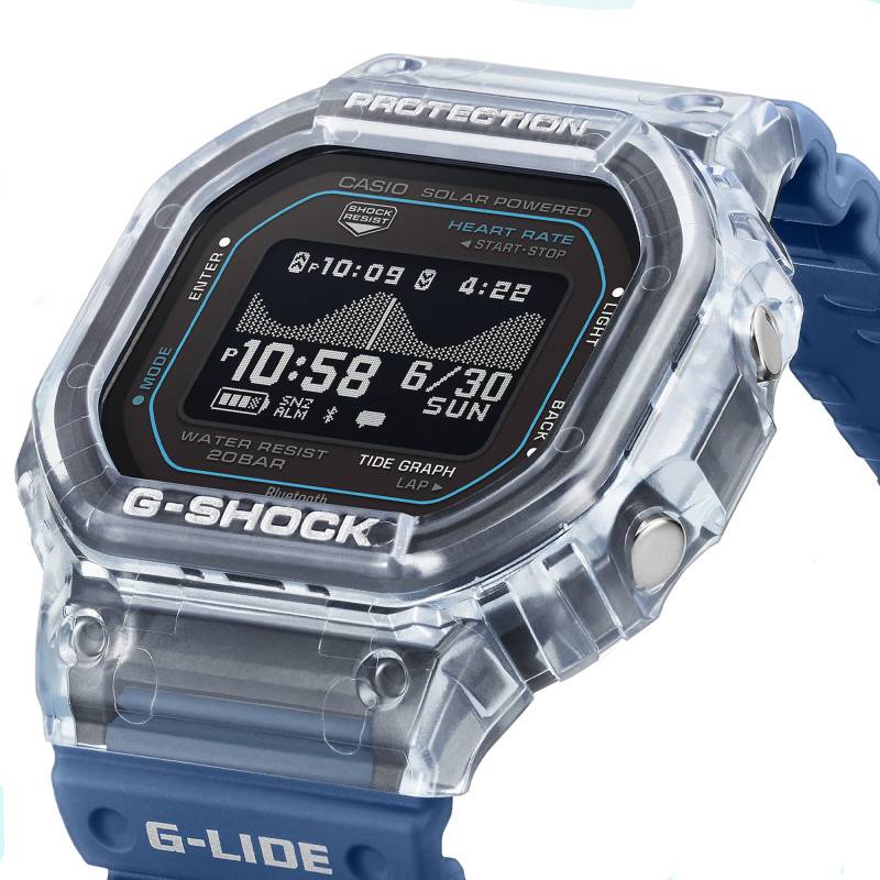 La montre Casio G-Shock G-Lide se distingue par sa conception robuste et ses multiples fonctionnalités, en faisant un garde-temps parfait pour les aventuriers et les amateurs de technologie. Son boîtier octogonal en résine de haute qualité, d'une longueur de 51,10 mm et d'une largeur de 44,50 mm, témoigne d'une conception pensée pour la résistance et la légèreté. Avec une épaisseur de 17,30 mm et un poids de 47 g, elle est conçue pour offrir le meilleur confort sans sacrifier la robustesse. La montre est équipée de quatre boutons-poussoirs stratégiquement positionnés pour un accès facile aux multiples fonctionnalités, allant du chronographe au chronomètre de précision au 1/100ᵉ de seconde, et bien plus encore. En termes de technologie, elle intègre la connectivité Bluetooth pour une synchronisation facile avec votre smartphone, rendant l'expérience utilisateur encore plus fluide et intuitive.