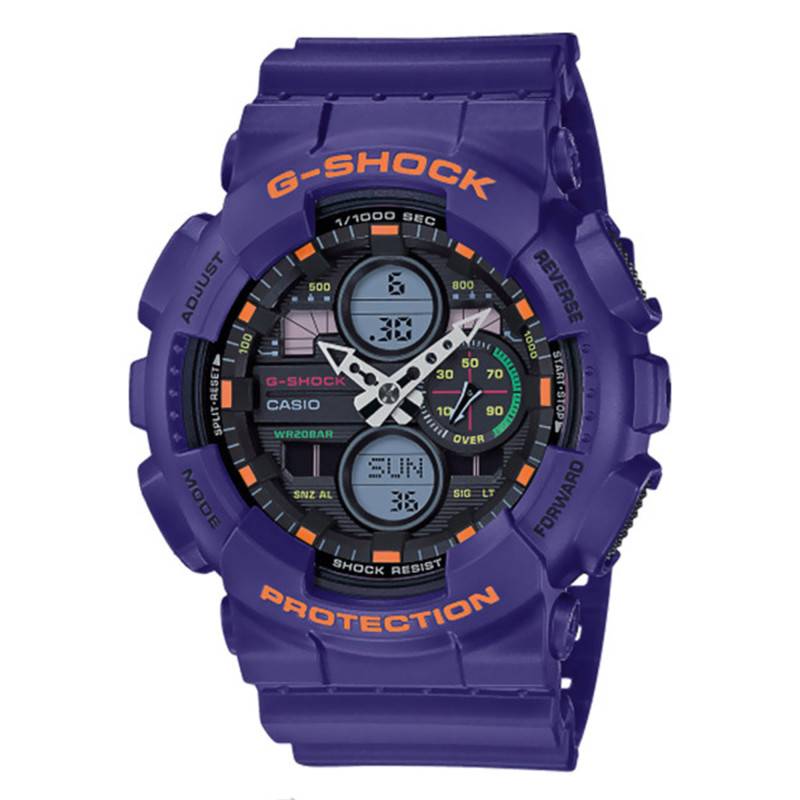 Découvrez la montre GA-140-6AER provenant de la gamme G-Shock de Casio. Elle a une résistance hors-norme notamment avec la G-Shock Protection et se montrera solide quelque soit les épreuves. Son boîtier mesure 51,2mm de diamètre et 16,9 en épaisseur. Le fait qu'il soit conçu en résine participe à la robustesse qu'il arbore. Le verre minéral utilisé viendra protéger ce boîtier des ternissures et possibles chocs. Les quatre boutons-poussoirs présents vous permettront de régler les options comme vous le voudrez sur l'écran avec un éclairage LED. Le fond de boîtier qui est mis en place est maintenu par des vis et donnera une étanchéité de 20 ATM, suffisant pour faire de la plongée en toute tranquillité.