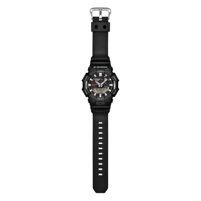 Le cadran de la G-Shock GA-B010-1AER est un véritable chef-d'œuvre d'ingénierie et de design. Il combine un affichage analogique-numérique, intégrant à la fois des aiguilles luminescentes pour une visibilité sans faille dans les environnements sombres, et un écran LCD haute définition. La finition du cadran brossée et le dépôt de vapeur appliqué sur la lunette ajoutent une dimension esthétique remarquable. Les index et aiguilles sont équipés de Neobrite pour une visibilité accrue. L'agencement des éléments, tels que le chemin de fer des minutes et les chiffres arabes, permet une lecture rapide et précise des informations. L'ajout du Super Illuminator assure une lisibilité optimale. Les fonctionnalités de l'écran débordent d'utilité avec un calendrier perpétuel, un affichage des jours, mois, et un chronométrage précis.
