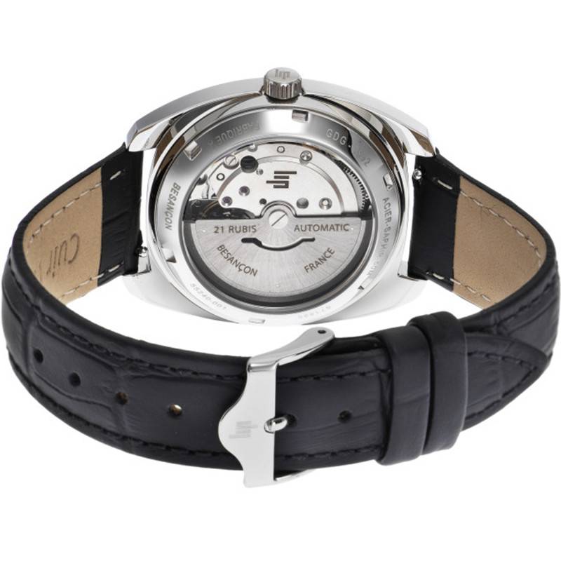 La montre Lip arbore un boîtier de forme tonneau en acier inoxydable 316L, réputé pour être à la fois robuste et résistant à la corrosion. Ce matériau offre une finition polie/brillante qui rehausse l'éclat naturel de la montre. Avec un diamètre de 35 mm et un poids de 60 g, ce garde-temps se distingue par sa légèreté et son confort inégalé. Le fond vissé et transparent ouvre une fenêtre sur son mécanisme interne, révélant l'art de l'horlogerie à son propriétaire. Cette gamme a un goût d'histoire, rendant hommage à Charles de Gaulle.