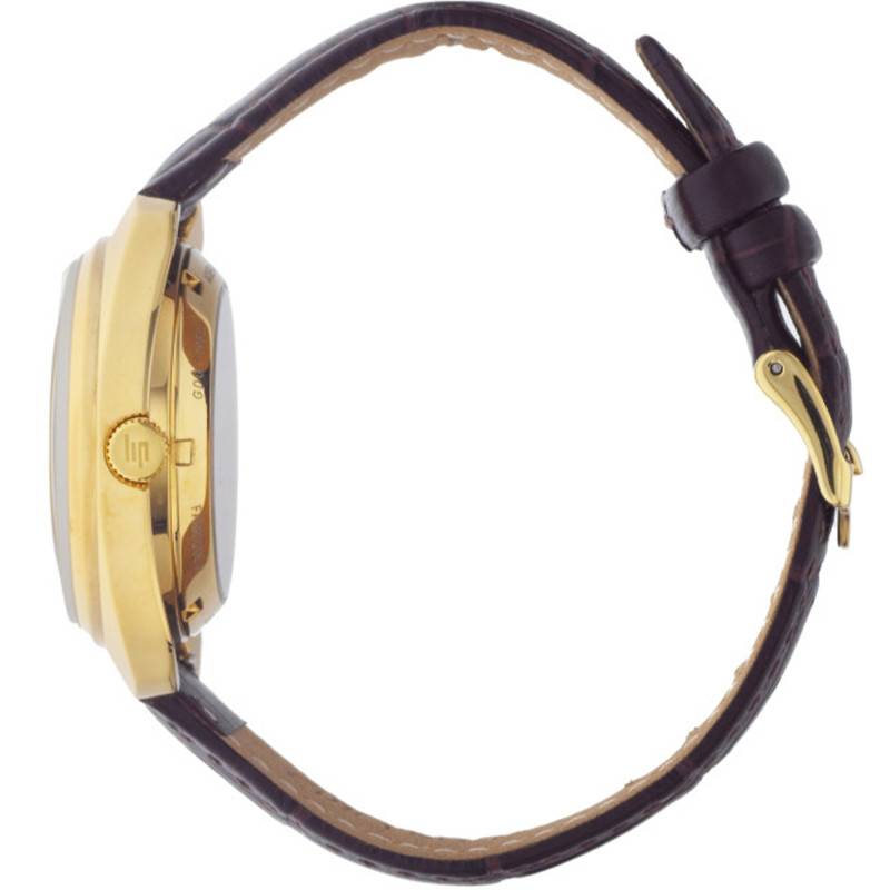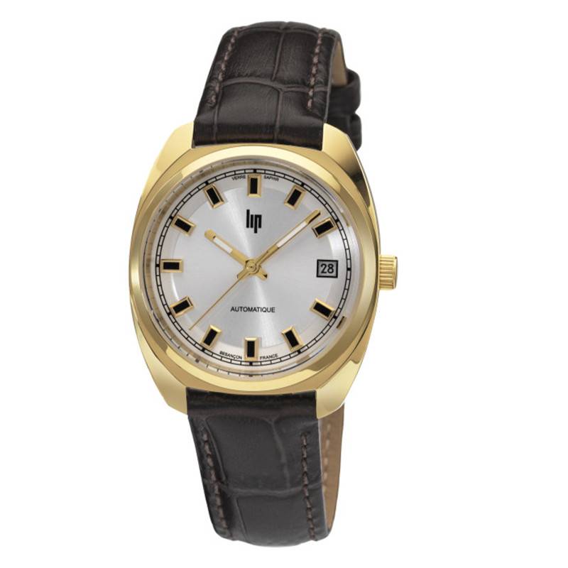 Cette montre issue de la collection Lip Général de Gaulle se distingue par son allure à la fois sobre et élégante. Son boîtier en acier inoxydable 316L est sublimé par une finition PVD jaune qui lui confère une teinte dorée éclatante. La forme tonneau du boîtier, mesurant 35 mm de diamètre, offre une touche rétro, tandis que son poids de 60 g assure un confort au poignet. Équipée d'un verre saphir plat avec traitement antireflets, elle promet une visibilité exceptionnelle et une résistance accrue aux rayures. Le fond de boîte, à la fois transparent et vissé, vous invite à admirer le mouvement interne en toute sérénité, témoignage du savoir-faire horloger français.