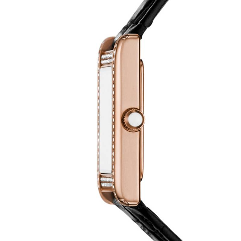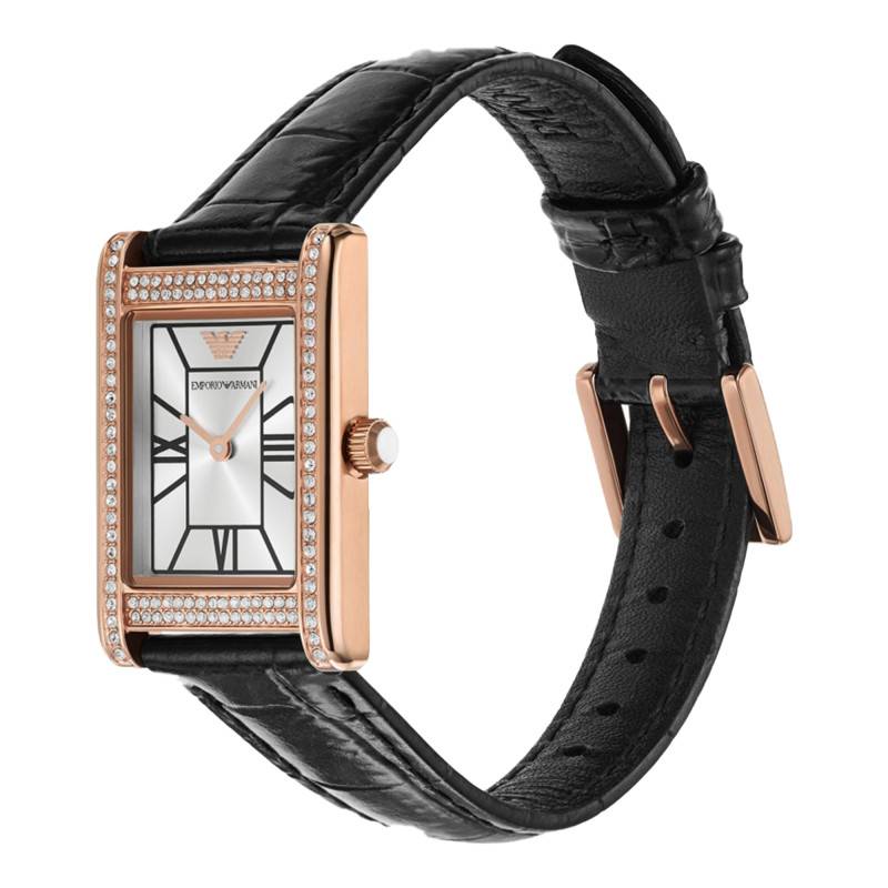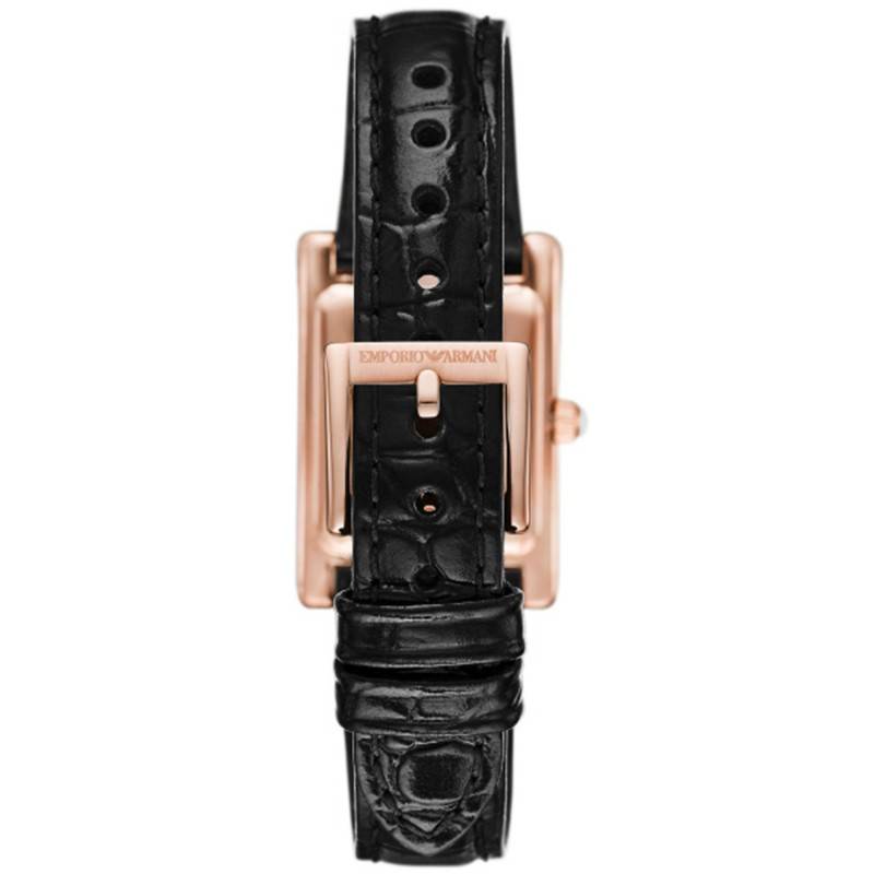 La montre Genni d'Emporio Armani représente un choix exquis pour les femmes cherchant à allier style et fonctionnalité. Dotée d'un boîtier en acier inoxydable aux dimensions sobres de 32 mm par 22 mm, cette montre affiche une silhouette rectangulaire délicate qui épouse élégamment le poignet. La lunette, sublimée par un PVD or rose serti de strass, apporte une touche luxueuse tout en restant discrète. La finition polie de la boîte renforce cette impression de sophistication tout en offrant une résistance appréciable aux marques du quotidien.