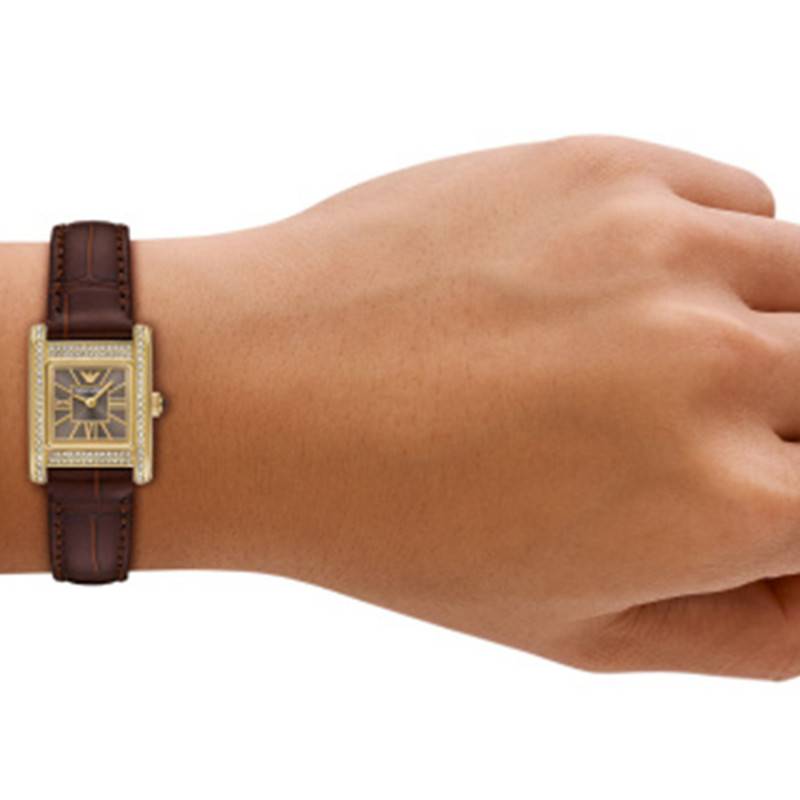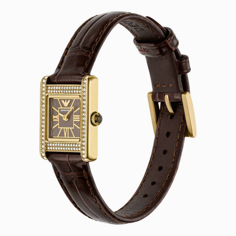 La montre Genni de la prestigieuse marque Emporio Armani se distingue par son design classique et raffiné. Avec un boîtier rectangulaire mesurant 26 mm de long et 20 mm de large, elle est spécialement conçue pour s'adapter aux poignets féminins. Le boîtier est fabriqué en acier inoxydable de haute qualité, alliant durabilité et élégance grâce à sa finition polie et mate. Ce modèle arbore une lunette magnifiquement sertie de strass, apportant une touche d'éclat et de glamour à l'ensemble.