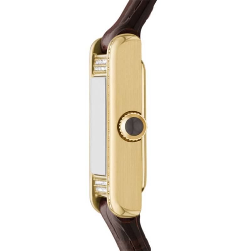 Le bracelet de cette pièce est aussi raffiné que le reste de la montre, fabriqué en cuir de bovin de couleur marron avec un élégant motif crocodile. L'entrecorne de 14 mm assure un ajustement confortable autour du poignet, tout en permettant une transition fluide entre le boîtier et le bracelet. Le fermoir est une classique boucle ardillon qui maintient fermement le bracelet en place, ajoutant à la sécurité et à la facilité d'utilisation de ce superbe accessoire.