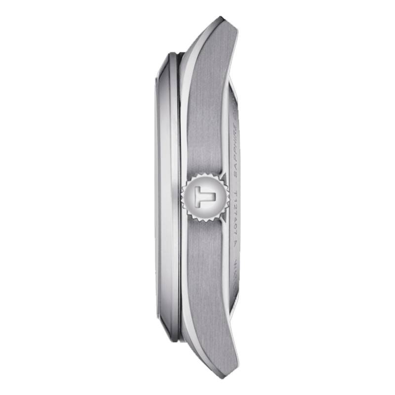 L'histoire de Tissot est soulignée par un grand nombre d'innovations technologiques qui leur a valu leur succès. Elle confectionne des garde-temps à partir de matériaux de qualité supérieure qui mettent en avant son savoir-faire suisse. Elle a réussi à marquer l'histoire en proposant la première montre à technologie tactile, la T-Touch. Cette marque est devenue très connue pour ses modèles qui disposent d'une bonne qualité et arborant des designs soignés. Cette belle montre Gentleman Powermatic 80 Silicium de couleur argentée sera du plus bel effet à votre poignet et vous vaudra un look distingué en toute occasion. Elle se compose d'un boîtier réalisé en acier inoxydable 316L poli et brossé disposant d'un poids de 165 gr pour plus de confort. De forme ronde, il mesure 40 mm de diamètre et 11,50 mm d'épaisseur et sera parfaitement adapté aux poignets masculins. Sur ce boîtier, est déposé un verre saphir bombé de traitements antireflet et anti-rayure. Très résistant, il protège le cadran des rayures et des chocs extérieurs auxquels il est fréquemment confronté tout en permettant une lisibilité optimale des éléments centraux. Afin de vous permettre de procéder aux réglages du cadran, vous trouverez une couronne crantée installée à 3 heures, sur laquelle est gravé le « T » de la marque. Enfin, ce garde-temps est doté d'un fond emboîté et transparent qui offre une vue sur le mécanisme tout en assurant une étanchéité de 10 ATM.