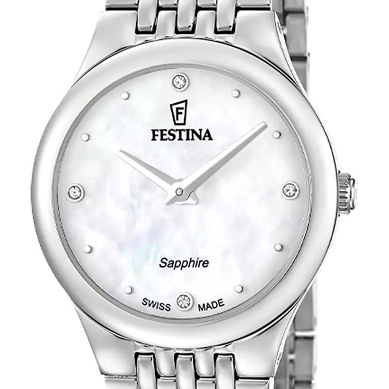 La montre Grace de Festina Swiss Made se distingue par son design épuré et moderne, destiné aux femmes appréciant l'élégance discrète et raffinée. Le boîtier, en acier inoxydable d'un poids de 58 grammes, présente une forme ronde qui épouse parfaitement le poignet pour un confort optimal. Avec un diamètre de 29 mm et une épaisseur de 6,50 mm, cette montre constitue un choix idéal pour celles qui recherchent la délicatesse et la légèreté. Le verre saphir plat, d'excellente qualité, contribue à la robustesse de la montre tout en préservant son aspect luxueux. Le fond emboité complète le style homogène du garde-temps, créant un ensemble harmonieux et soigné.