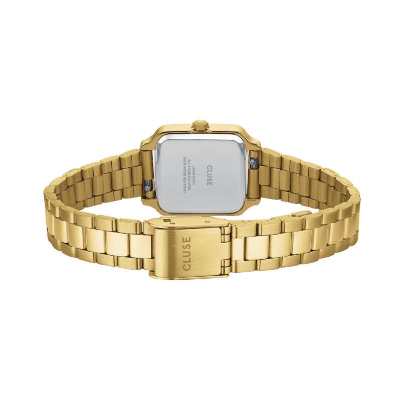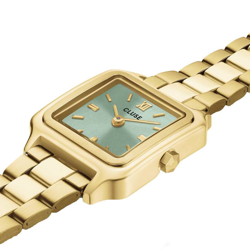 La montre Gracieuse Mini de Cluse est le parfait mélange d'élégance et de fonctionnalité, pensée pour la femme moderne qui apprécie un style net et sophistiqué. Dotée d'un boîtier carré mesurant 21 mm en largeur et en hauteur, cette montre ne manquera pas d'attirer l'attention avec son cadre en acier inoxydable de couleur jaune. La finition du boîtier est un mariage harmonieux entre une texture mate brossée et une surface polie, apportant une douceur tactile et visuelle au design. La qualité du verre minéral assure une résistance aux rayures tout en offrant une clarté parfaite pour consulter l'heure.